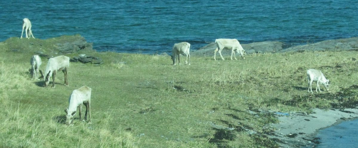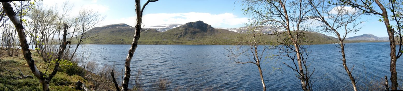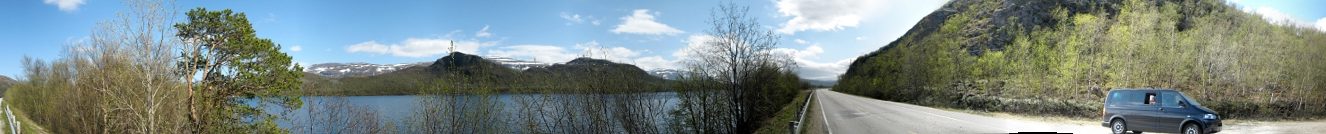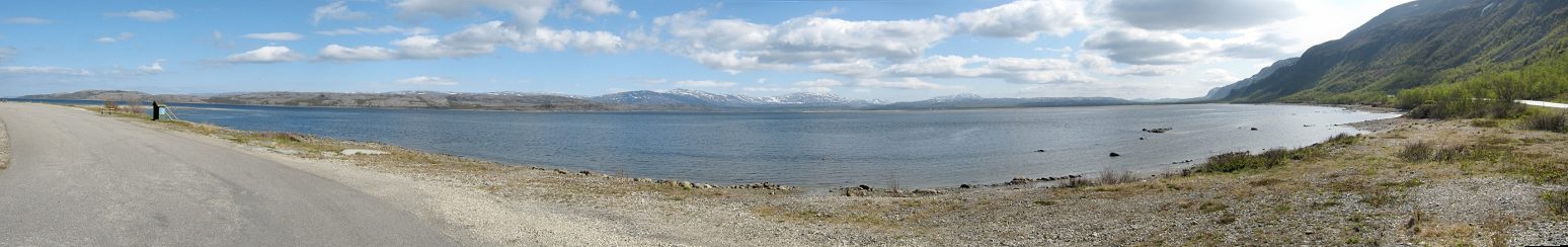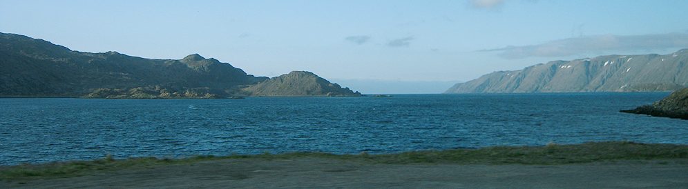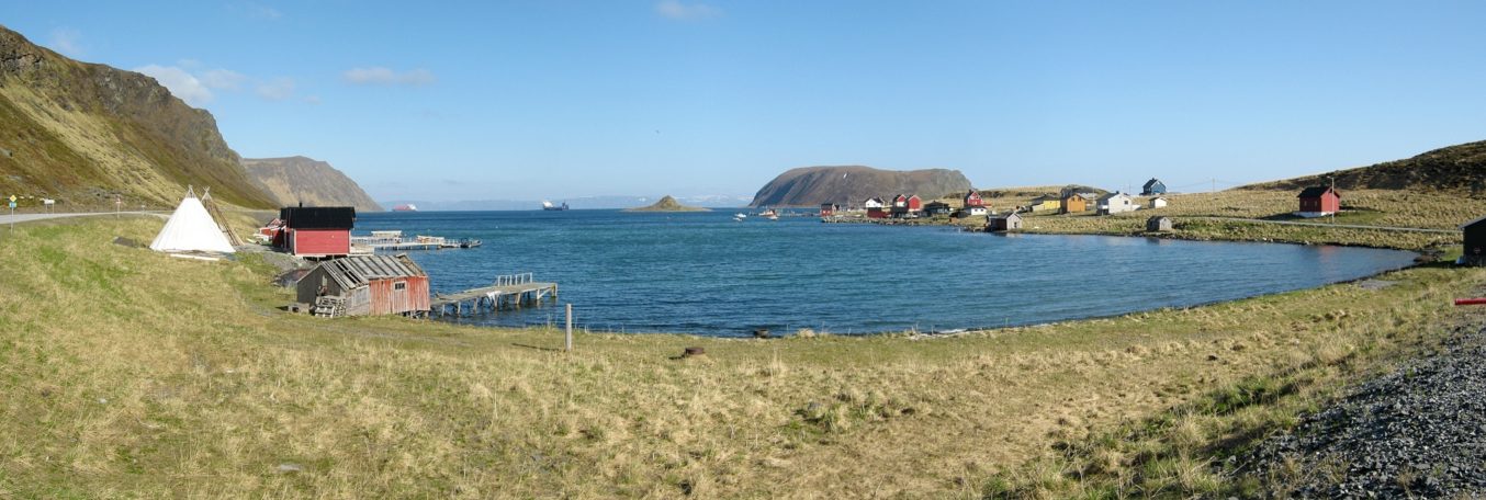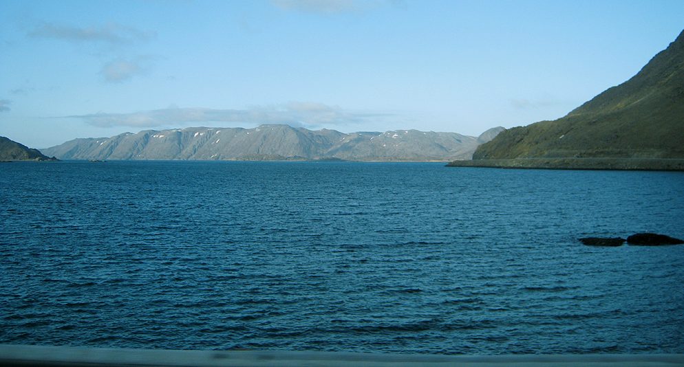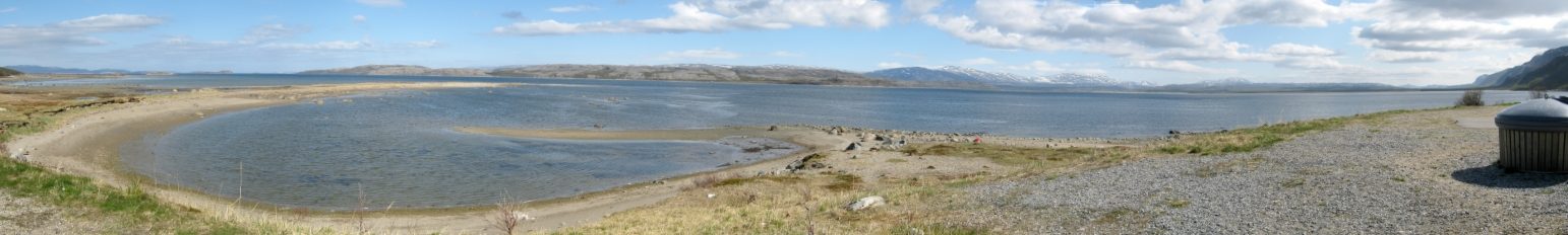 Am Porsangenfjord ist das Klima deutlich milder. Das untere Bild zeigt die Südspitze. Links sind 2 Zelte der Samen zu sehen.