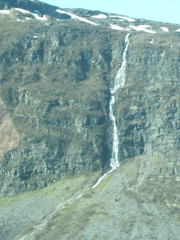 Vor dem erreichen des Fjordes muss das Küstengebirge überquert werden. Die dortige Landschaft erinnert mit ihren schneebedeckten Bergen an die Hochalpen. Der Weg führt an mehrere Bergseen und Flüssen vorbei.
