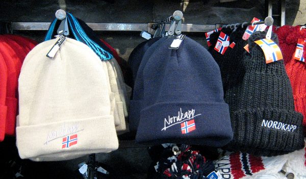 Neben den Postkarten scheinen Nordkap-Kappen ein Renner zu sein. Das