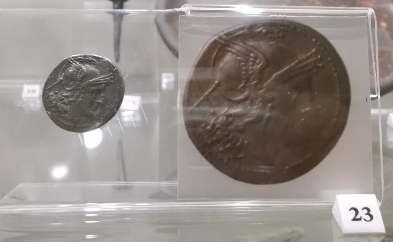 Münzen mit dem Handelsgott Hermes sind am Flügelhelm