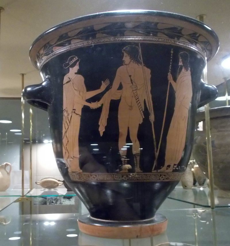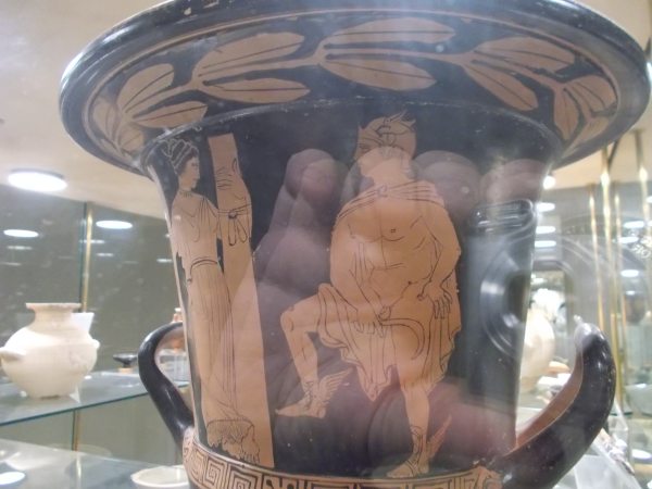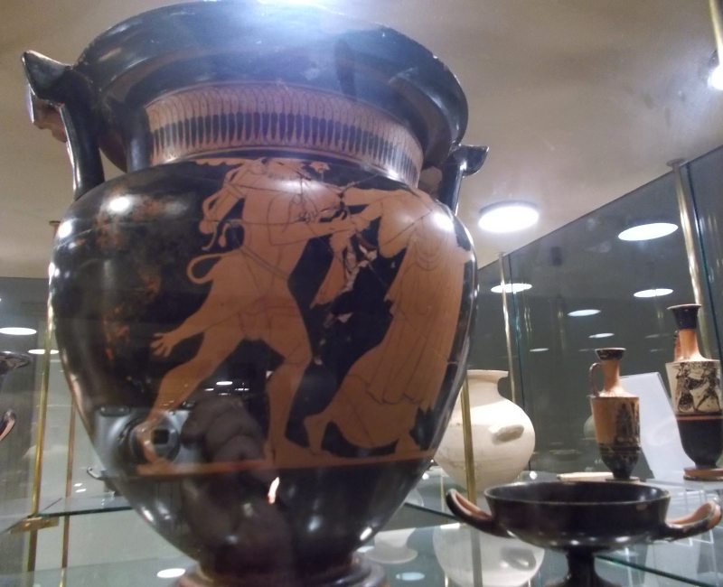 Griechische Vasen mit Herkules im Löwenfell.