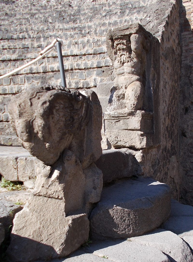Ähnlich kennen wir heute noch die Kammerspiele als Ort für kleinere Inszenierungen. Das große Theater war Open Air. Das kleinere Odeon war überdacht und bot etwa 1000 Sitzplätze.