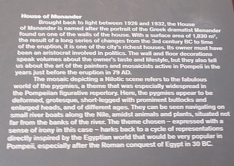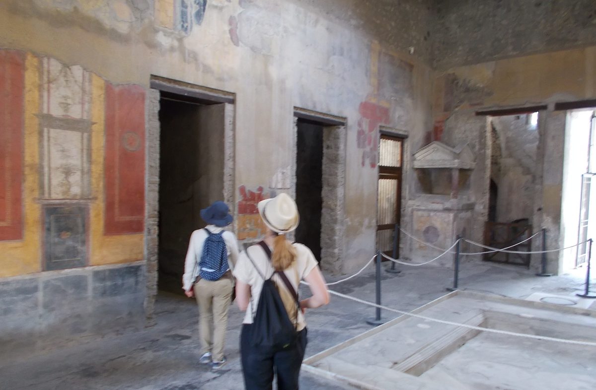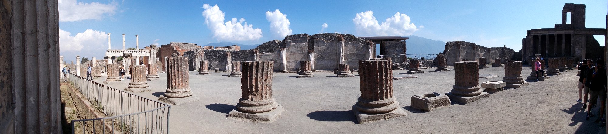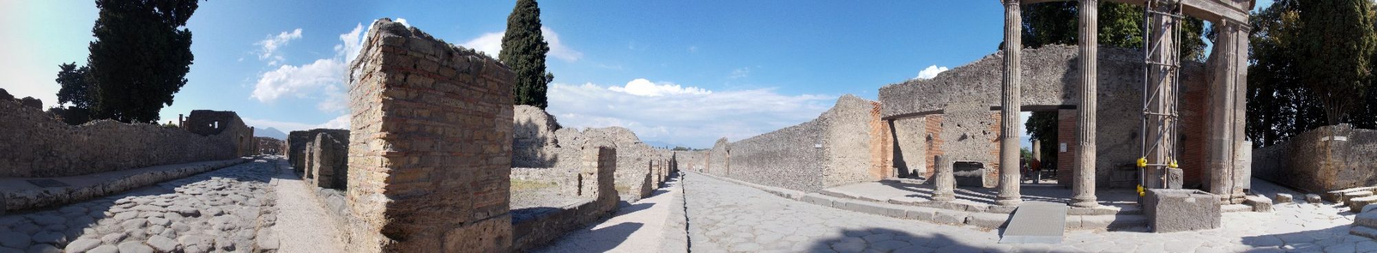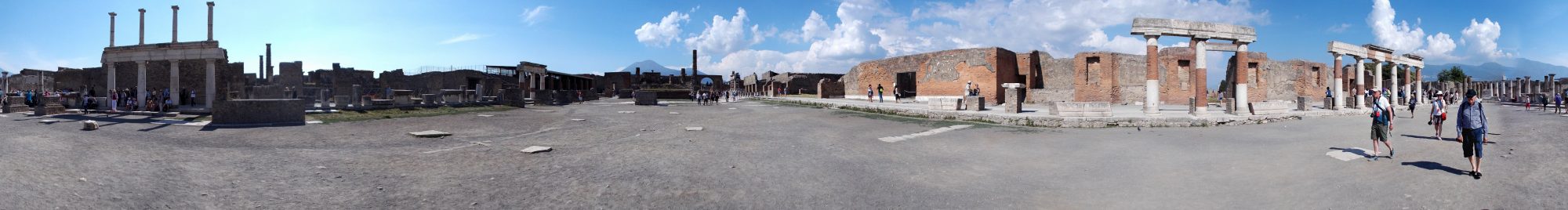 Nach Herculaneum und Oplontis gab es für Pompeji zu wenig Zeit. Die Stadt erschlägt durch ihre Größe und die Vielzahl von interessanten Häusern. Allein die wichtigsten Freskos und Mosaike zu besichtigen, benötigt mehrere Stunden. Eine gute Vorbereitung ist ratsam. Bei der Ausgabe des Audioguides entstand der Eindruck das nur ein kleiner Teil der Stadt zugänglich wäre. Daher wurde zu Beginn zu viel Zeit am Forum verschwendet. Erst später wurde klar wieviel unbedingt noch besichtigt werden muss. Gut ist der Kurzführer ´arte,m´. Damit gelang es immerhin in der kurzen Restzeit 2 Drittel der Highlights abzugrasen.