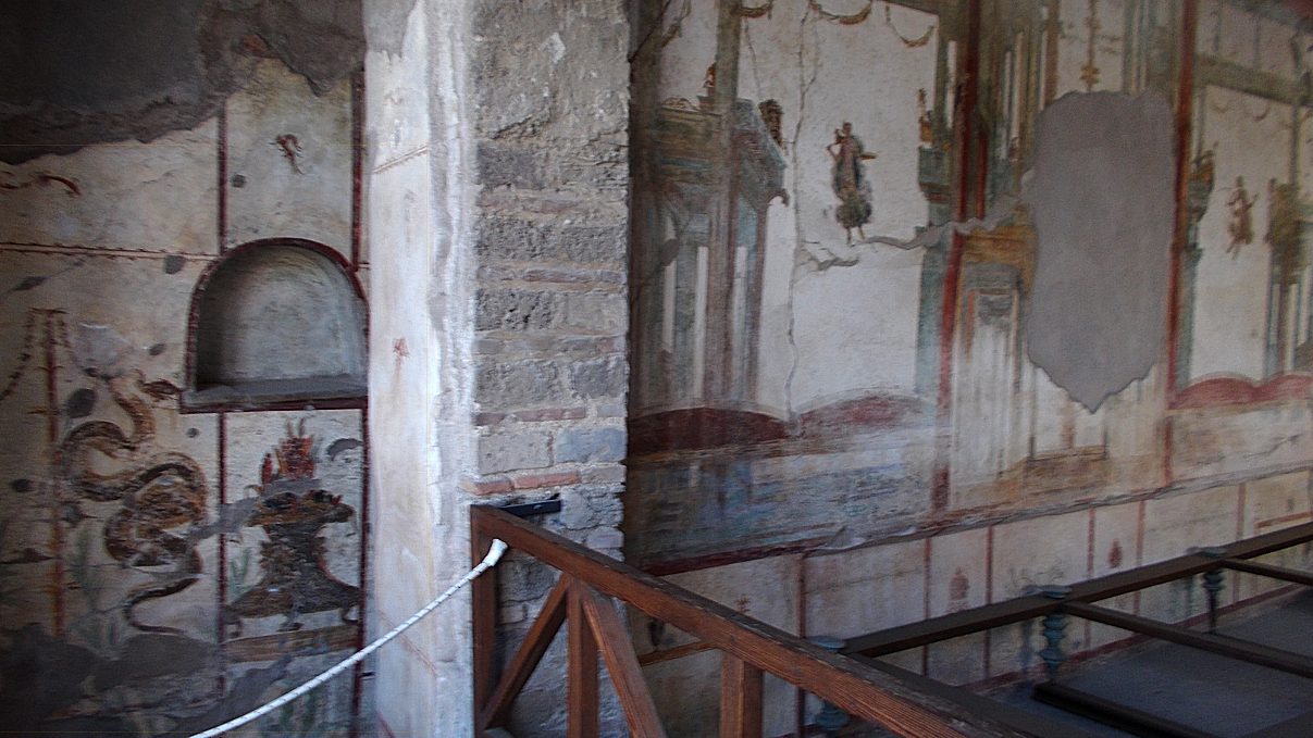 Die Fresken im Haus des Obstgartens liegen in einem dunkeln Raum der nur über die Tür einsehbar ist. Daher waren sie nicht so leicht zu fotografieren.
