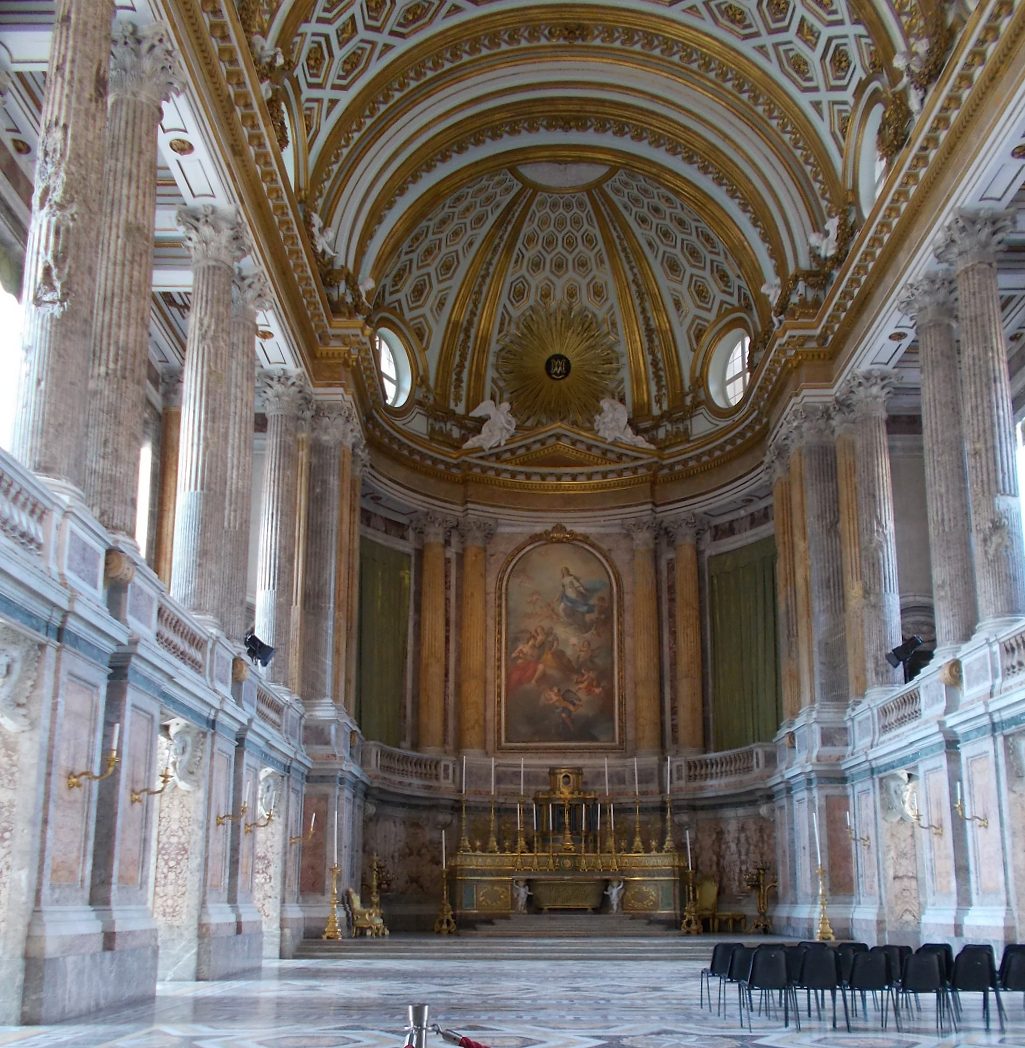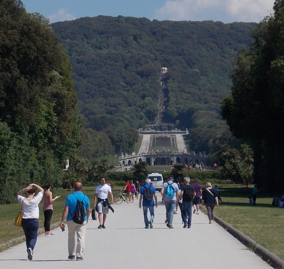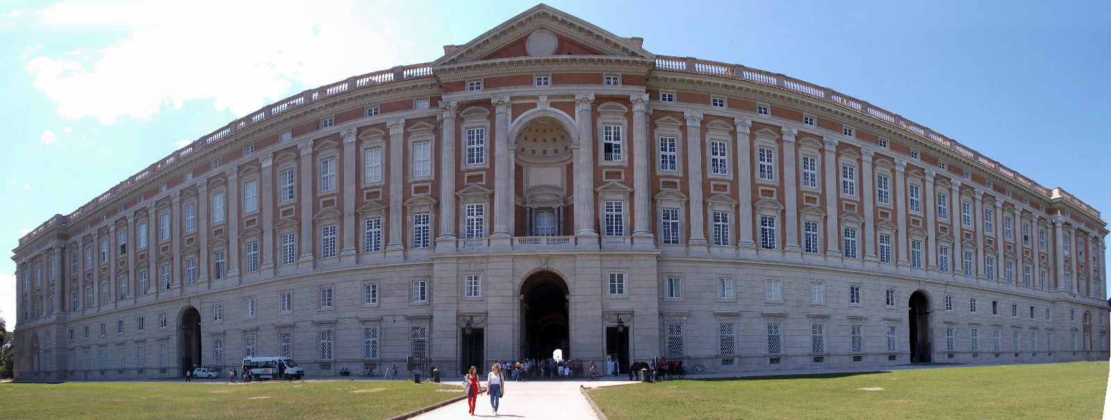 Die Stadt Casserta ist mit großer Enge in die Schlossanlage hinein gewachsen. Dennoch gelang es vom Schloss aus alle Sichtachsen frei zu halten. Die mittlere Achse erlaubt einen Blick auf den 3 km langen Schlosspark, der nach Norden als Bergpark ausgeführt ist.