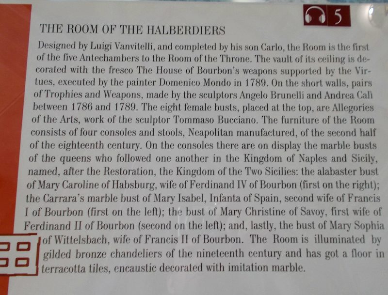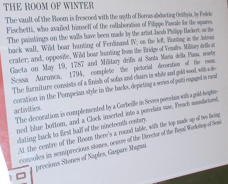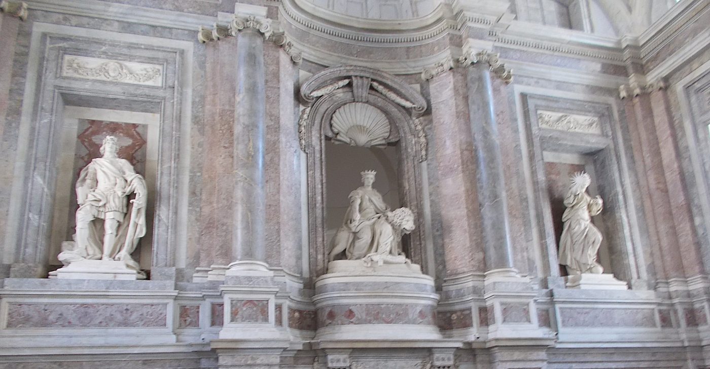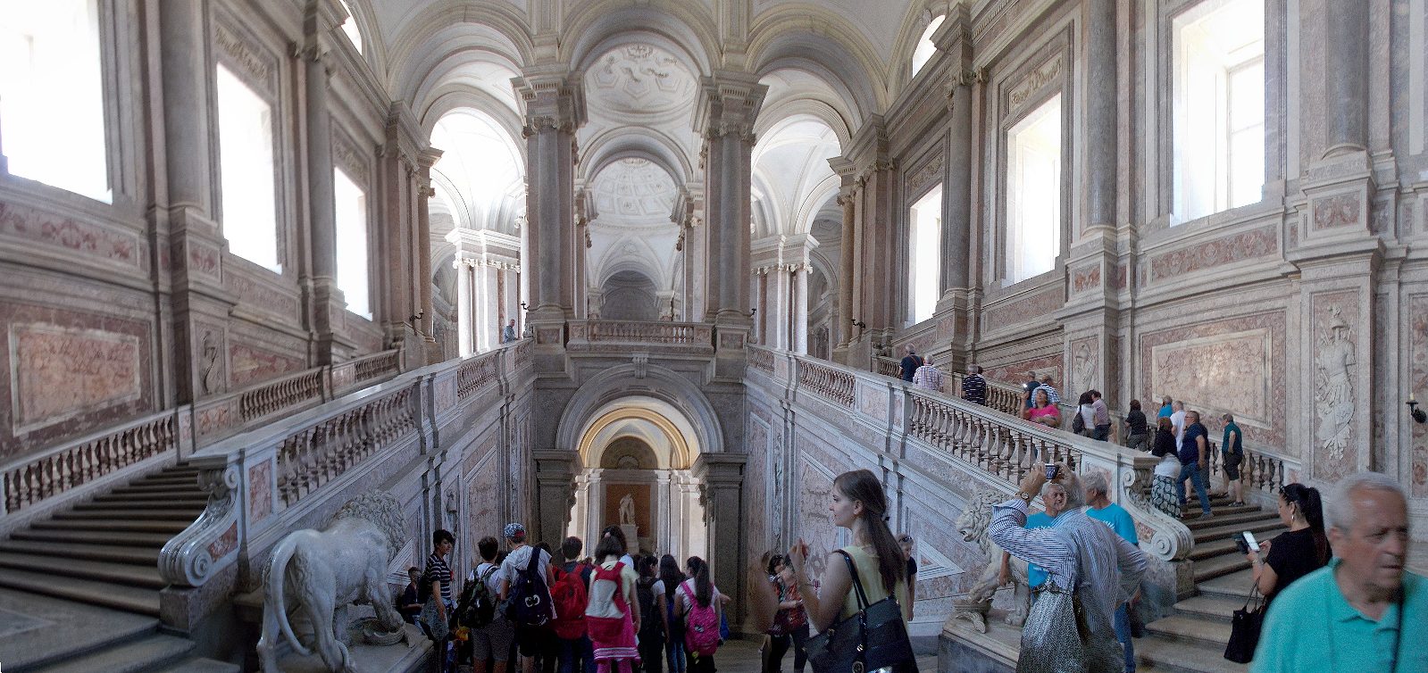 Die Bauzeit des Schlosses fällt zusammen mit der Entdeckung Pompejis. Daher hatten die Könige eine umfangreiche Antikensammlung allerbester Qualität. Im Eingangsbereich steht ein 2000 Jahre alter Herkules, der dem Athener Bildhauer Glykon zugeschrieben wird.