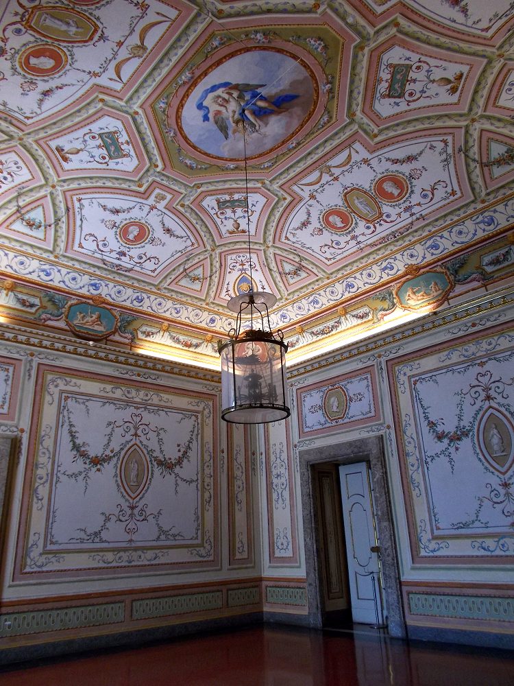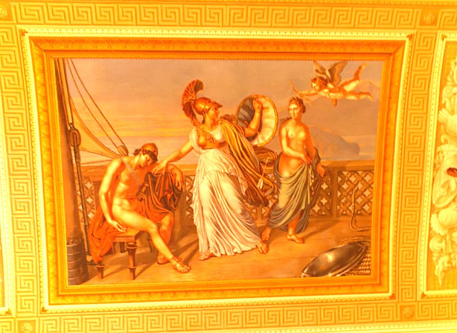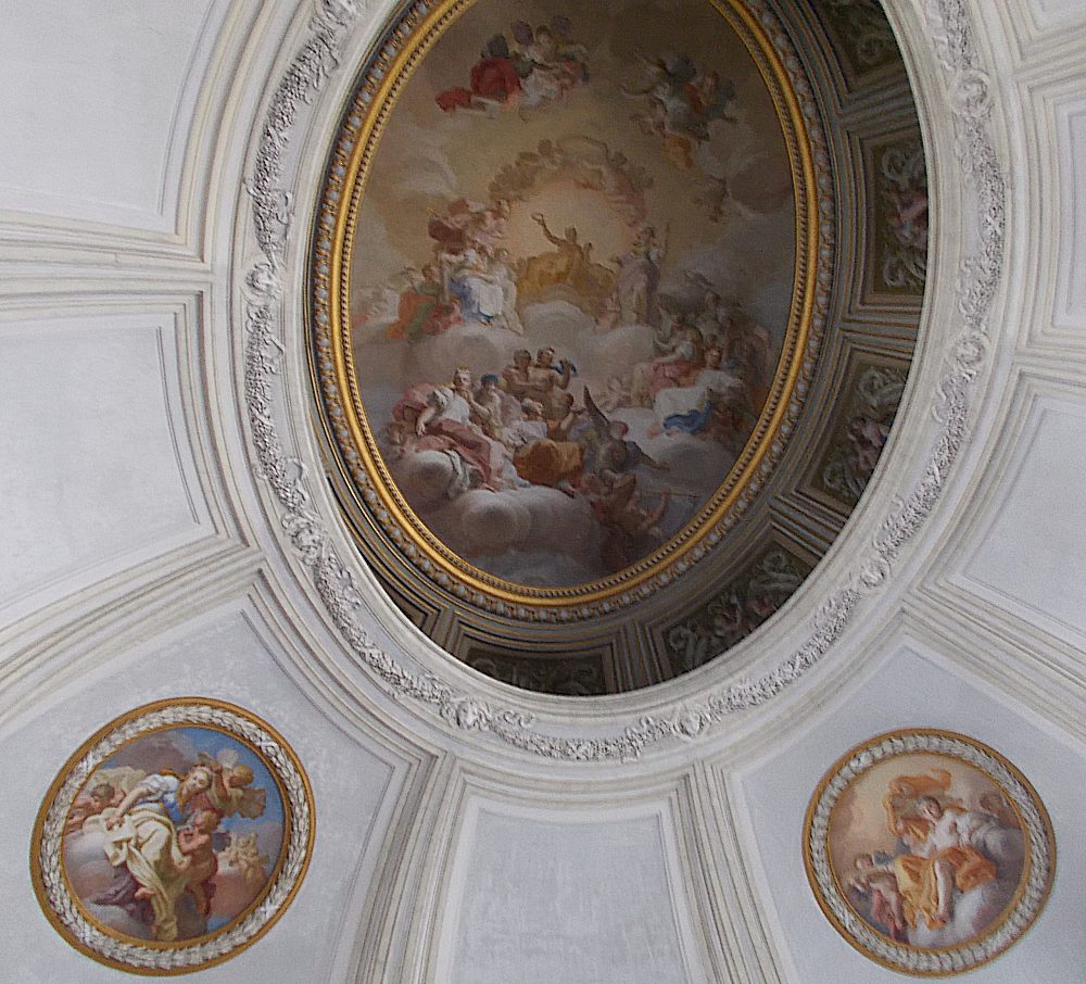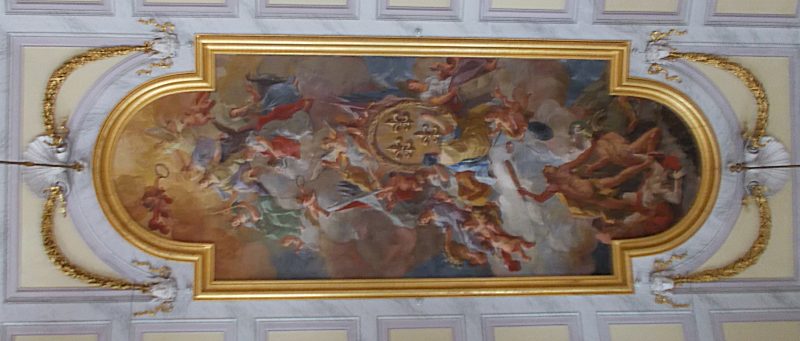 Das Deckengemälde zeigt den königlichen Hof des Apollon.