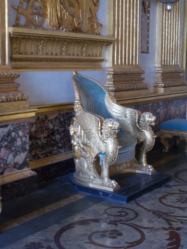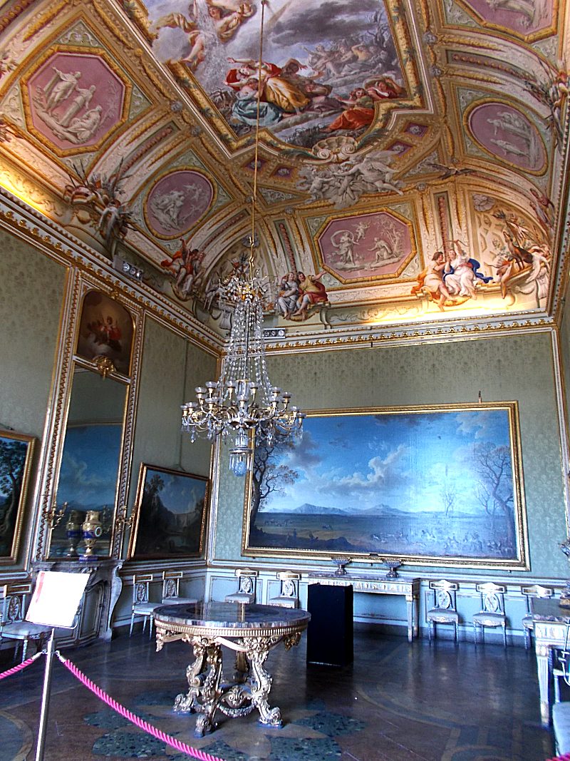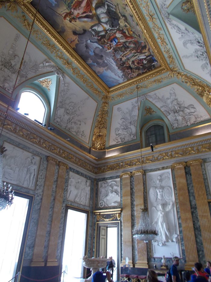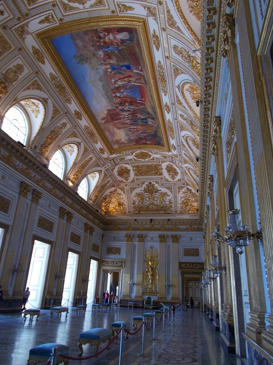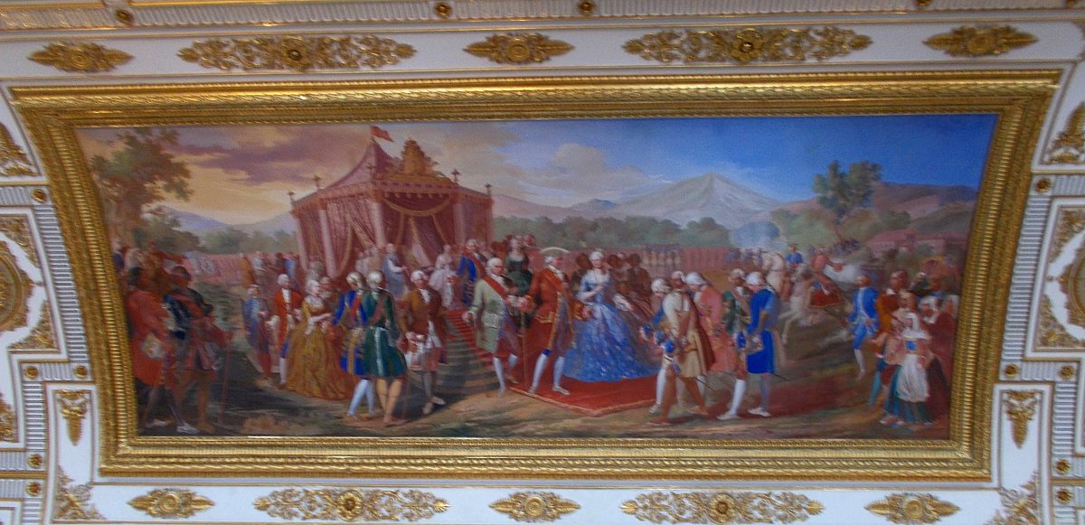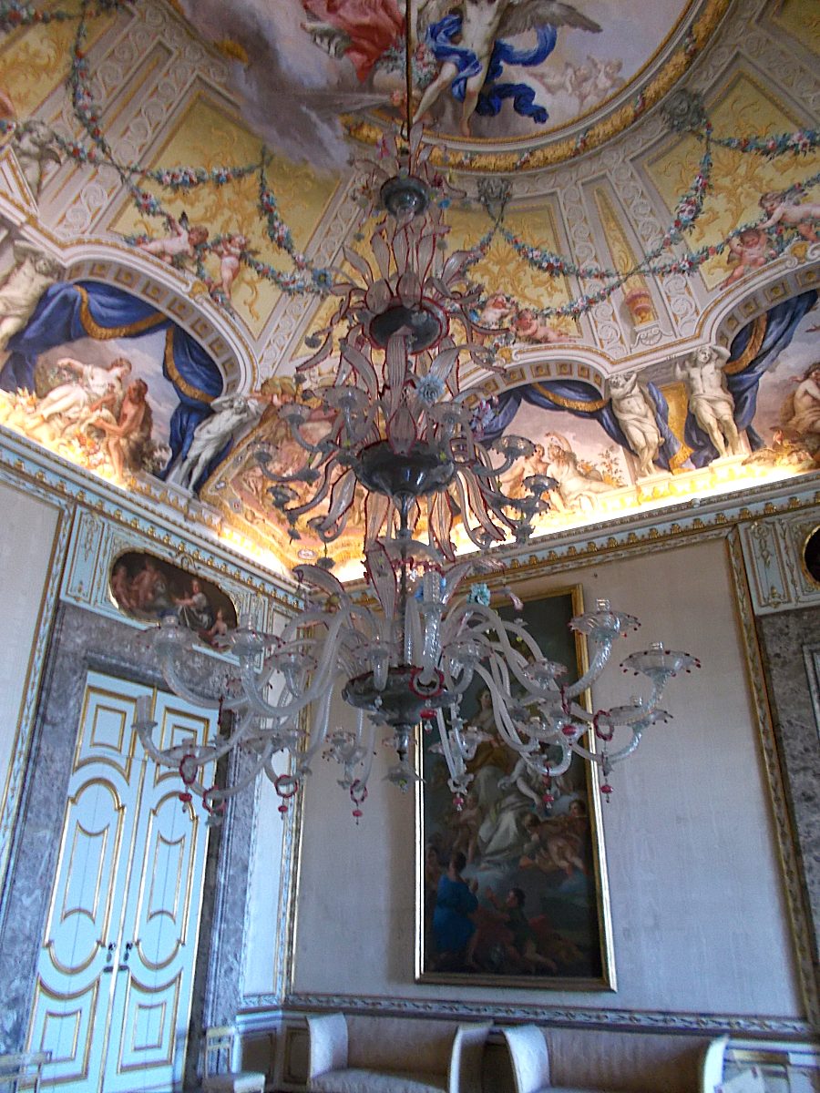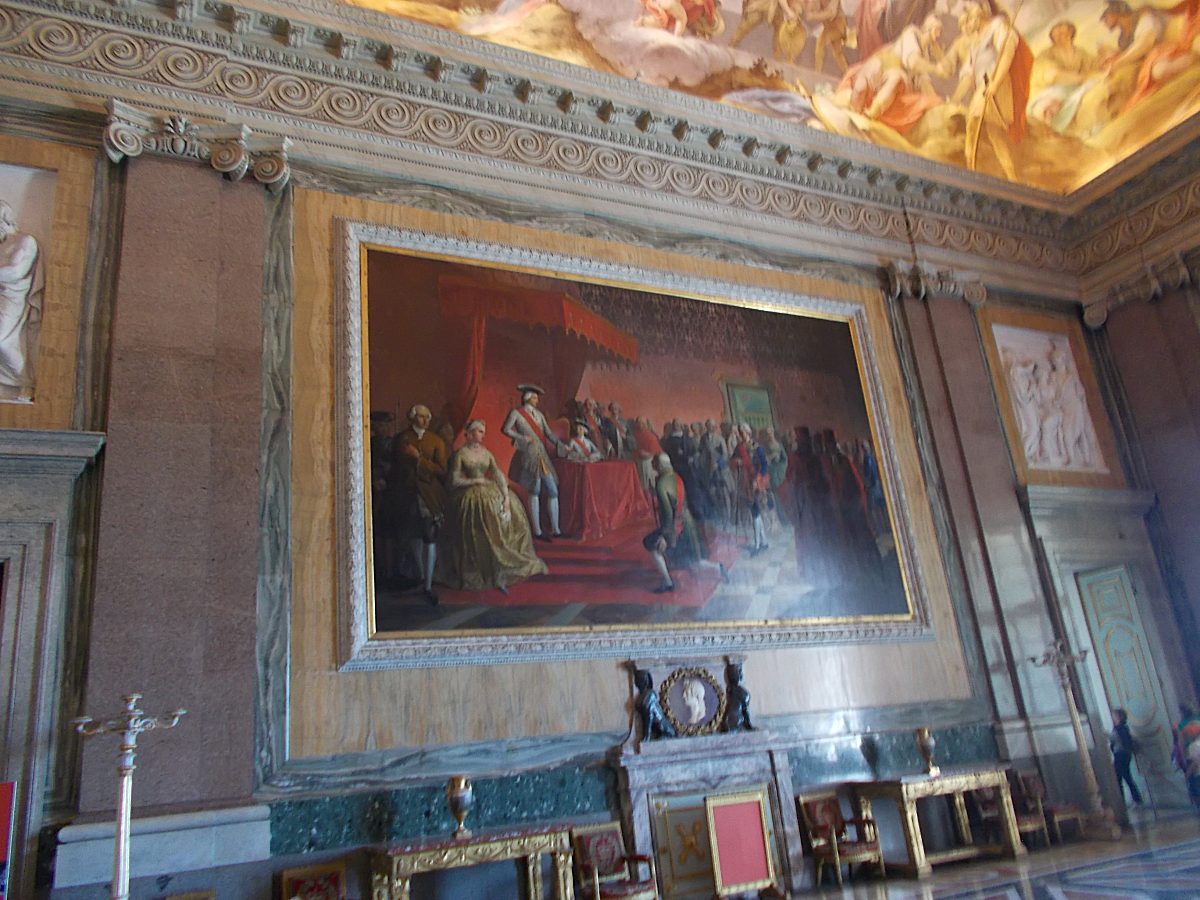 Der Thronsaal zeigt ein Deckengemälde mit der Grundsteinlegung des Schlosses durch König Karl.
