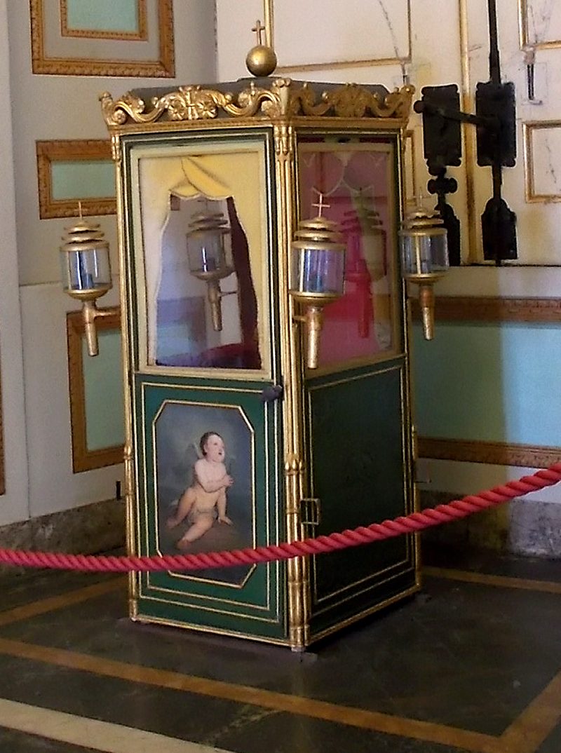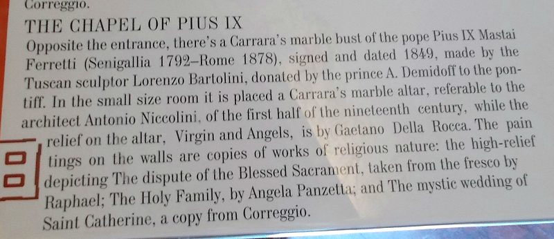 Eine kleine Kapelle ist Papst Pius IX geweiht, um an seinen Besuch im Schloss zu erinnern. Seine Sänfte hat sich erhalten.