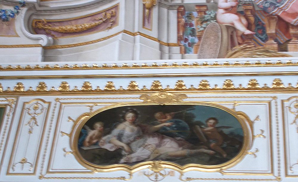 Im Raum des Frühlings gab es Darstellungen der 7 Musen der 7 freien Künste. Urania die Muse der Astronomie verrät sich durch ihren Sternenkranz.