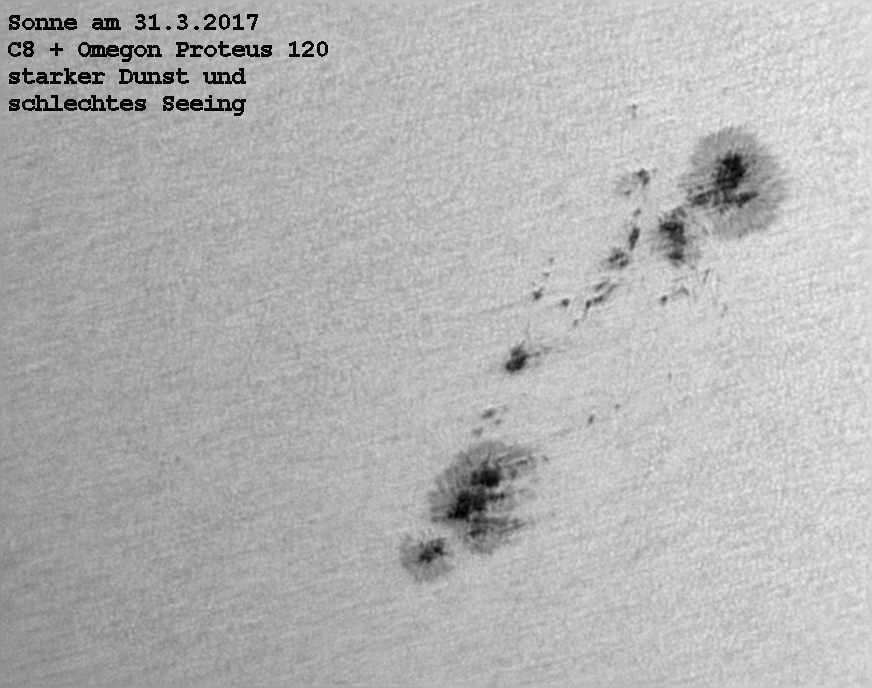 Bei Ankunft waren 2 Sonnenteleskope aufgebaut und trotz diesigen Himmels gelang ein Bild des zu dem Zeitpunkt sichtbaren großen Sonnenflecks.