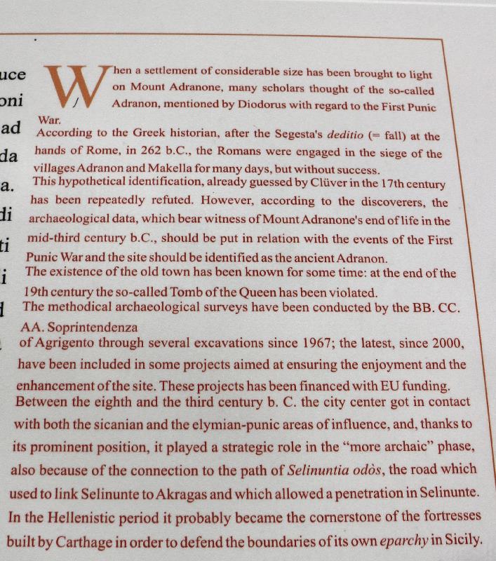 Außerhalb des Ortes liegt der Monte Adranone mit der Ausgrabung
