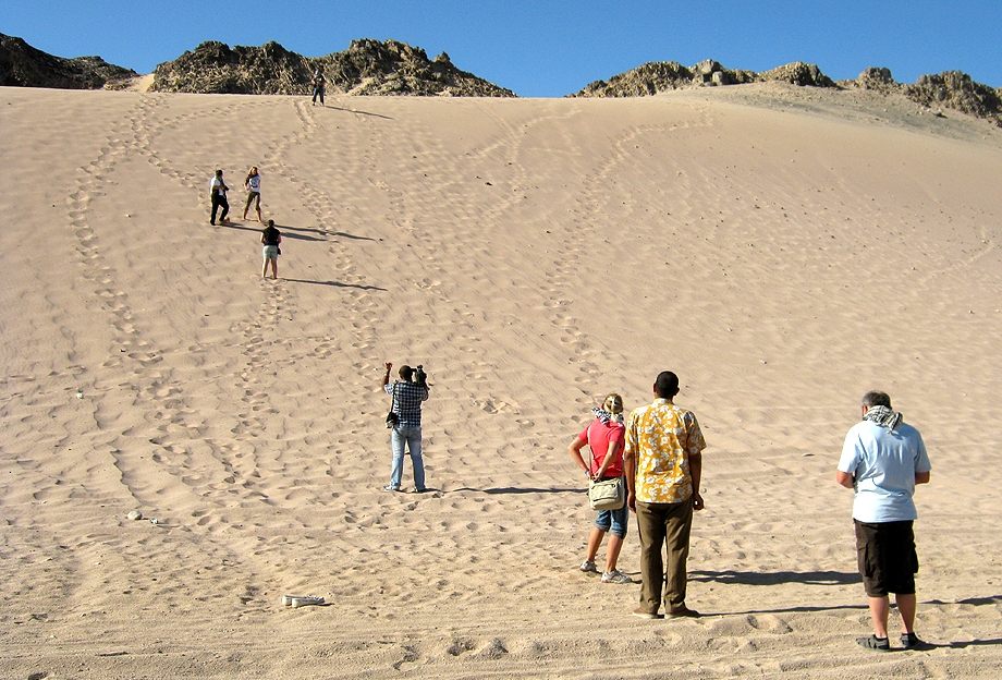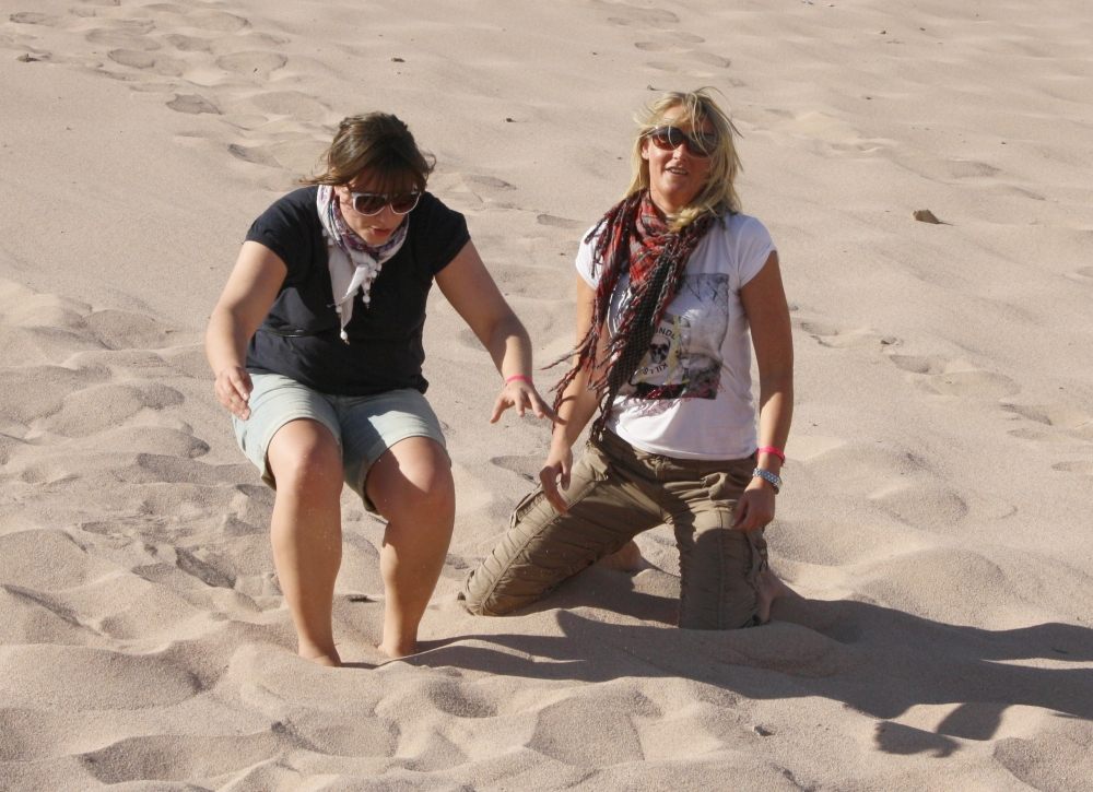 Beim Dünenklettern waren die Mitreisenden erst etwas schüchtern, der Spass mußte erst entdeckt werden.