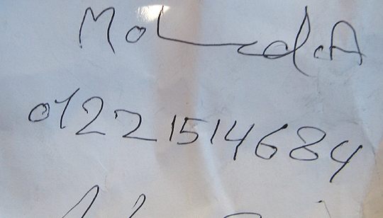 zeigte. Seine Telefonnummer hatte er aufgeschrieben: