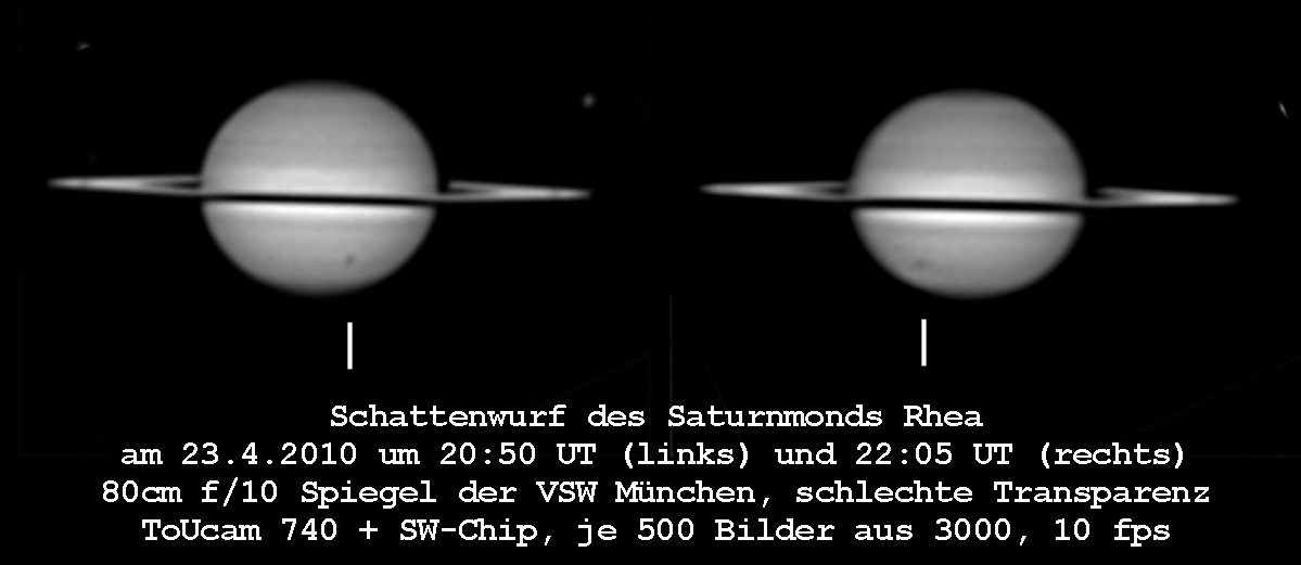 Es wurde auch versucht die Rhea-Scheibe vor dem Saturn nachzuweisen.