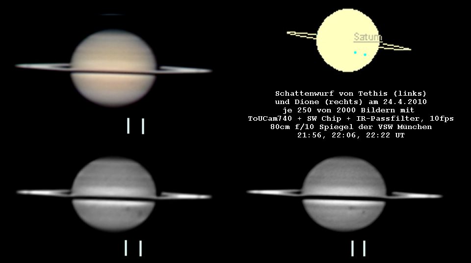 Dione und Tethis warfen zeitgleich ihren Schatten auf Saturn.