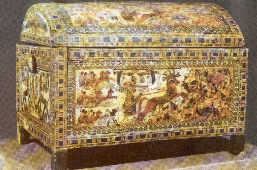 die Asiaten im Osten. Diese Schatulle zeigt den Pharao auf seinem Streitwagen kämpfend
