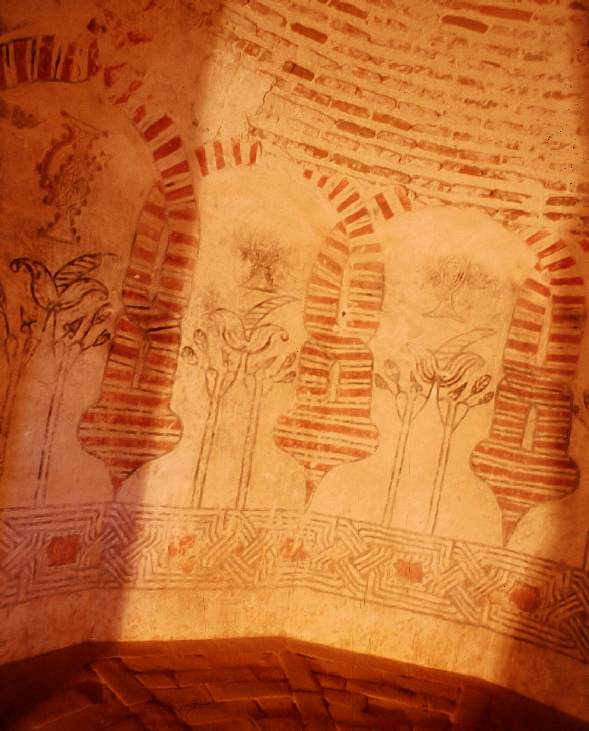 Verkachelung und Wandmalerei zu sehen.