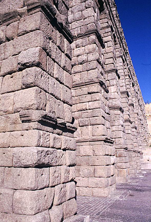 Wenn man die Steine des Aquäduktes genau betrachtet, ist bei jedem ein kleines Loch zu sehen.