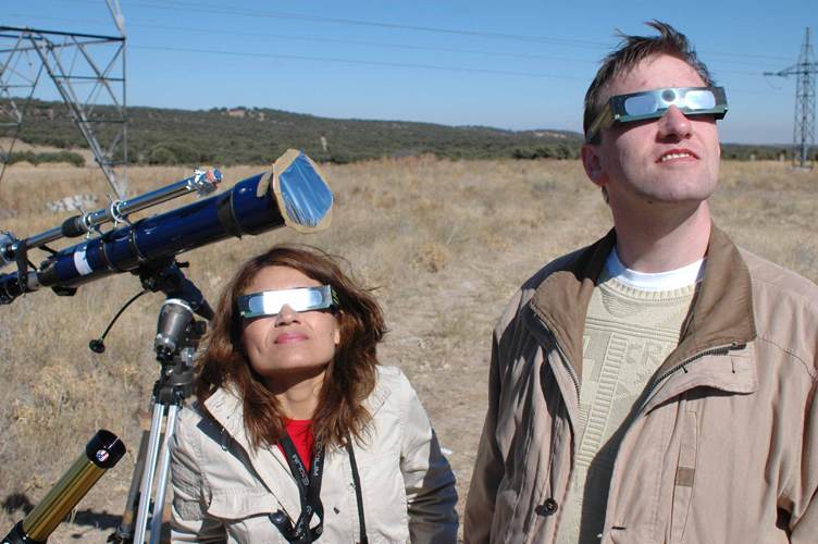 Protuberanzen schob. Aber auch im Weißlicht wurde mit Finsternisbrille und Feldstecher