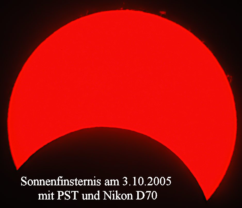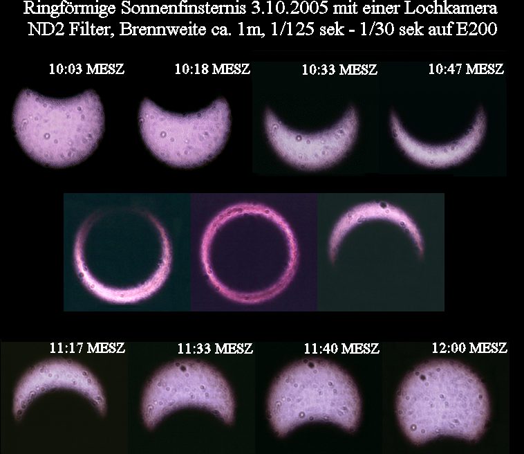Fotografiert wurde mit einem 120/1000mm FH-Refraktor und einer Lochkamera.