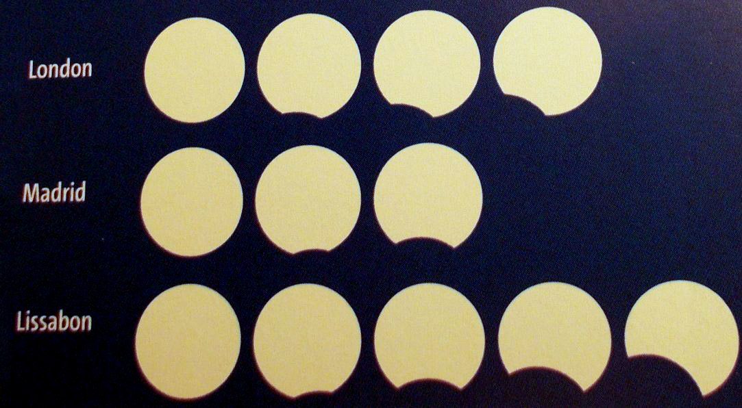 Die Finsternis ist zum Ende auch in Europa sichtbar. Urlauber in Spanien sollten am Abend des 22.8. auf eine gute Horizontsicht achten um die partielle Phase zu beobachten. Sie können zumindest sagen ´Sie wären dabei gewesen´.