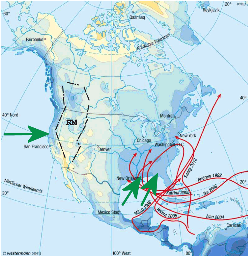 Südwest. Es gibt jedoch durch die Rocky Moutains einen
