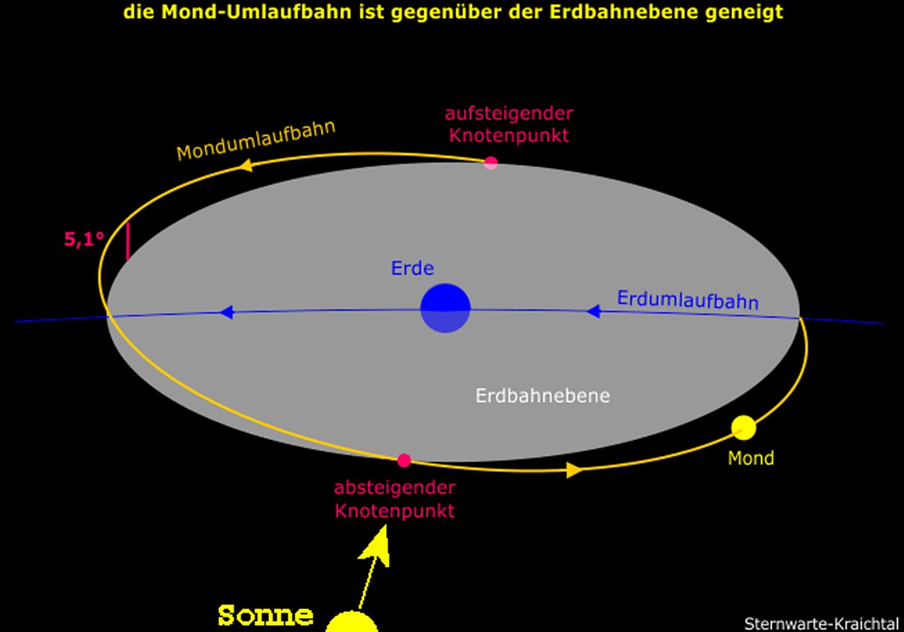 -Der Mond in seinem Knotenpunkt stehen, sich also auf der Ekliptik befinden.
