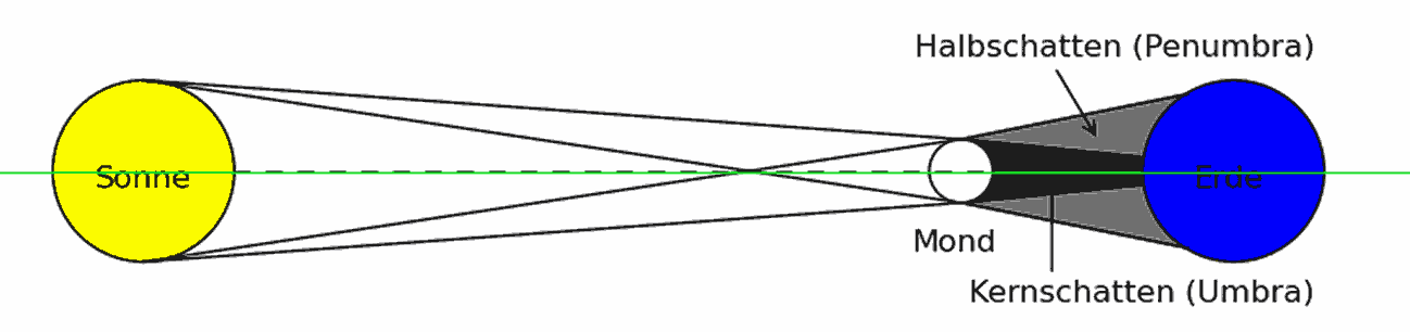 Finsternis gibt es, wenn Sonne, Mond und Erde EXAKT in einer Linie