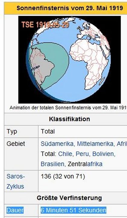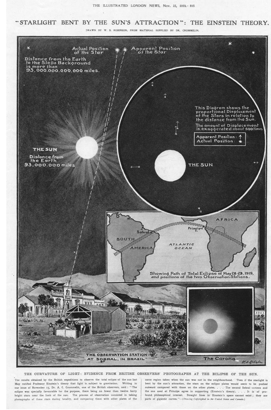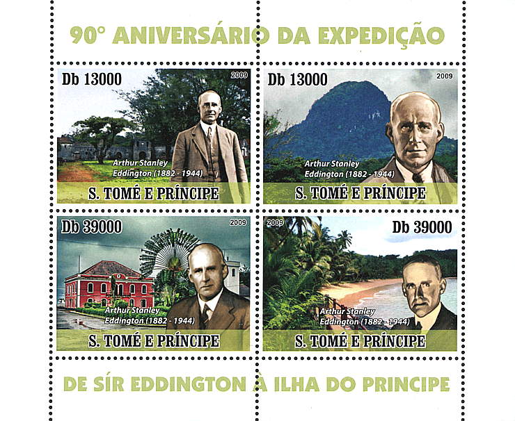 England rüstete 1919 zwei Expeditionen aus. Der Astronomer Royal Frank Watson Dyson reiste nach Sobral in Südamerika und der Professor für Astronomie in Cambridge Arthur Stanley Eddington reiste nach St.Tome und Principe.