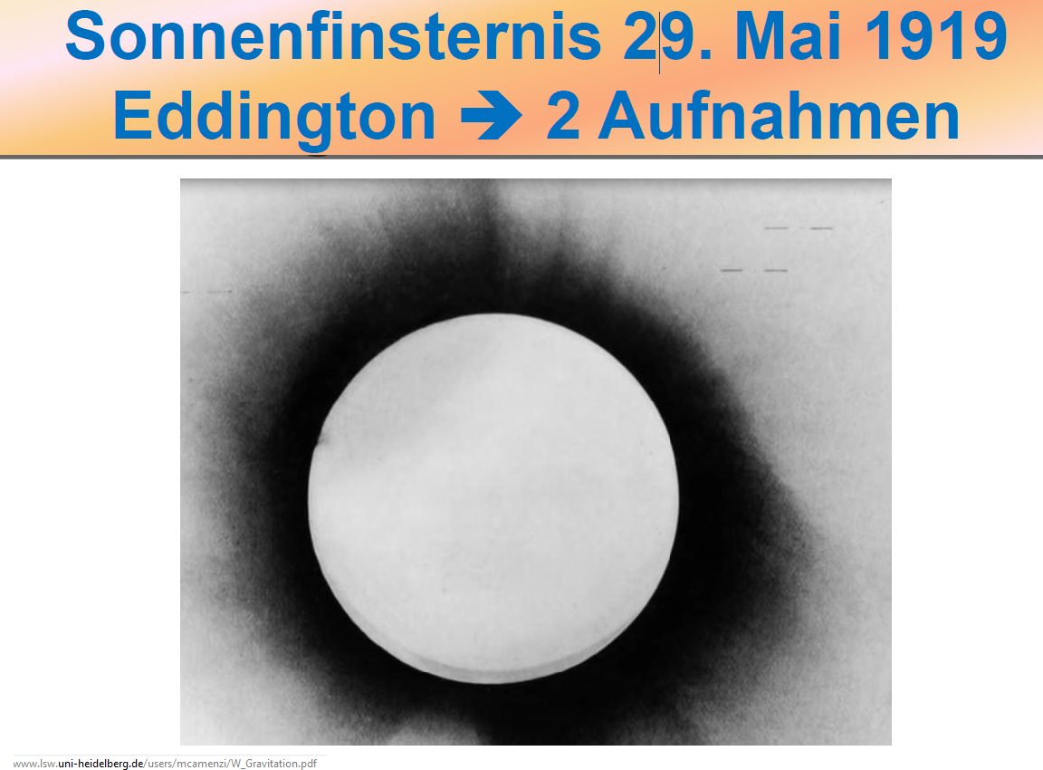 Als Einstein die Relativitätstheorie entwickelte, gab es zunächst keine Möglichkeit sie zu beweisen. Eddington kam auf die Idee bei einer Sonnenfinsternis die Lichtablenkung sonnennaher Sterne zu messen. Bei der besonders langen Sofi von 1919 stand die Sonne nahe der Hyaden und es war per Astrometrie ein erster Nachweis möglich. Einstein wurde schlagartig berühmt und der vorher schon berühmte Eddington wurde noch etwas berühmter. Letzterer ist heute etwas vergessen, aber zum Jubiläumsjahr 2019 wäre es passend im Vorfeld sein Experiment zu wiederholen.
