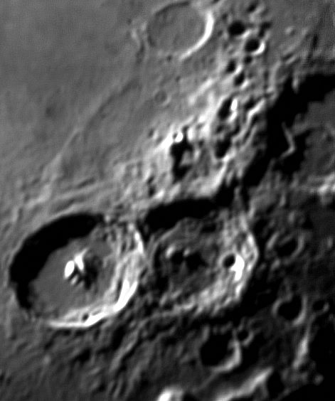 kostete die Kolimation einige zeit und so stand der Mond schon sehr tief. Links Posidonius mit Rillen: