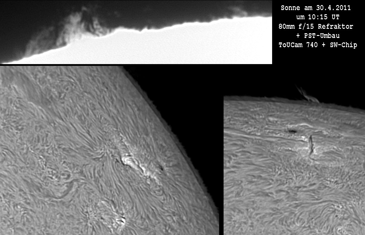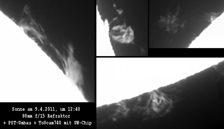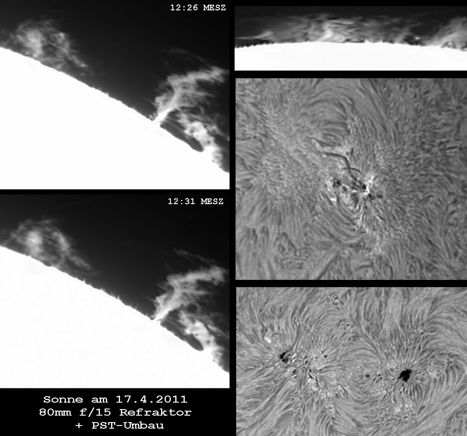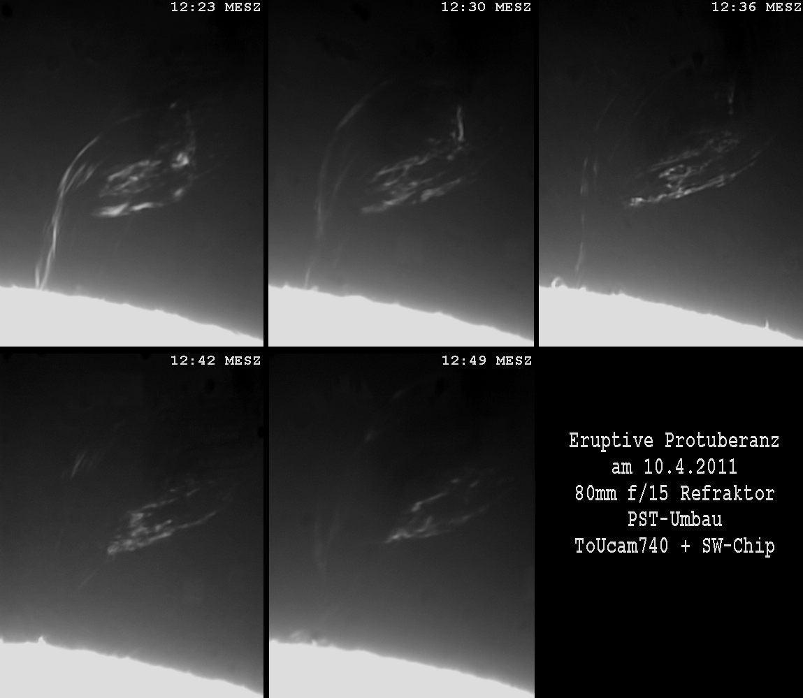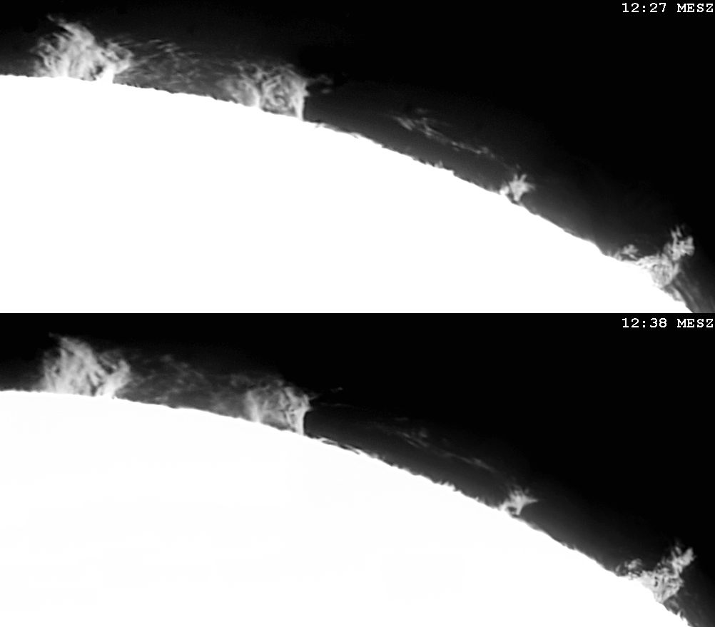 Bemerkenswert war eine eruptive Protuberanz die zur Mittagszeit gut fotografiert werden konnte