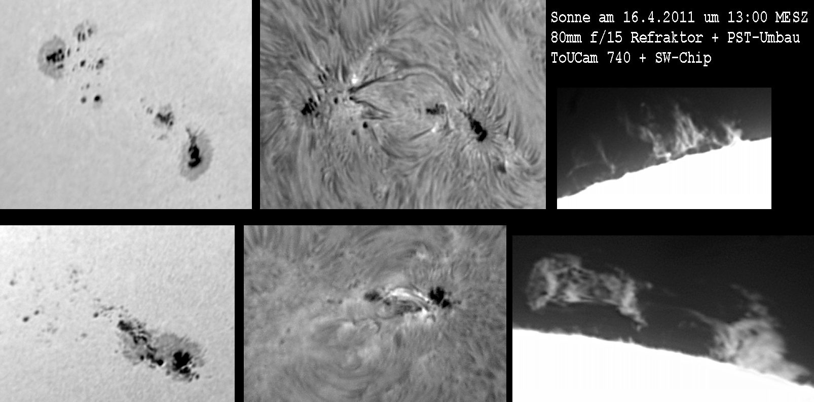 Tagen Flecken und Protis beobachtet werden. Zwei schöne Gruppen waren zu sehen.
