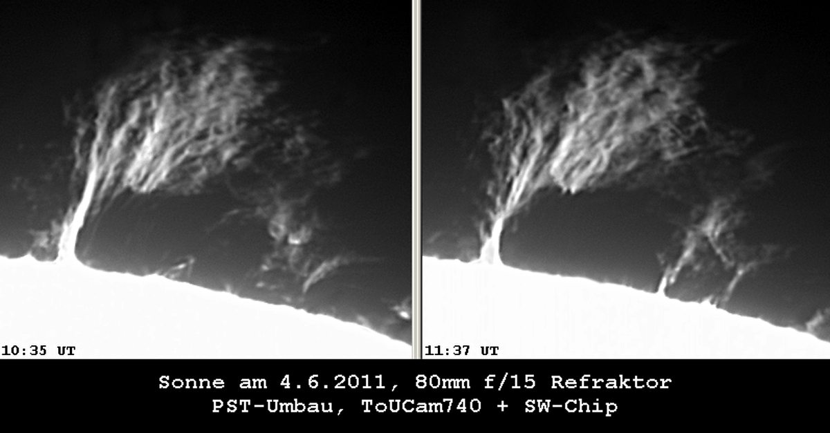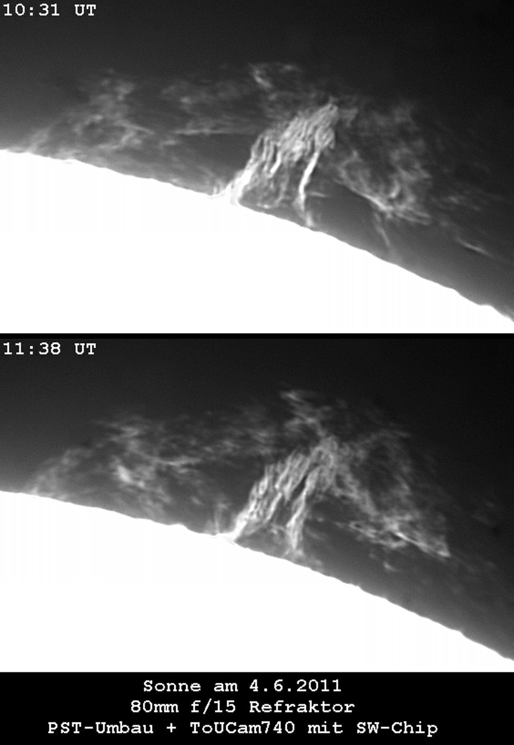 Die schönste Protuberanz als Animation mit 4 min Abstand: