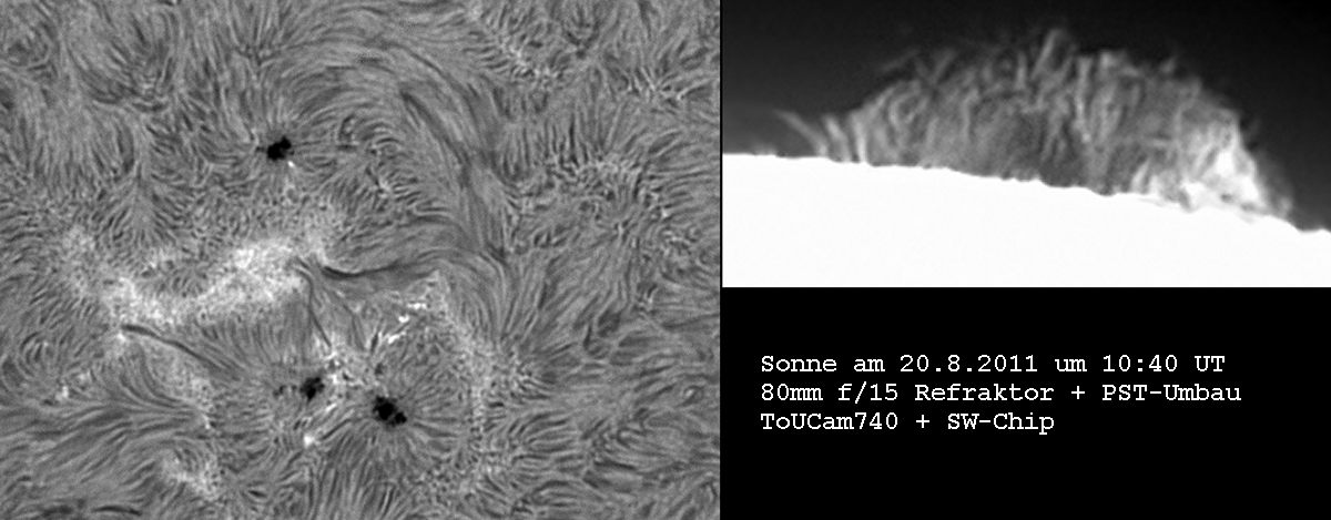 Am 2.8. gelang es, sie im Weißlicht und H-Alpha zu fotografieren.