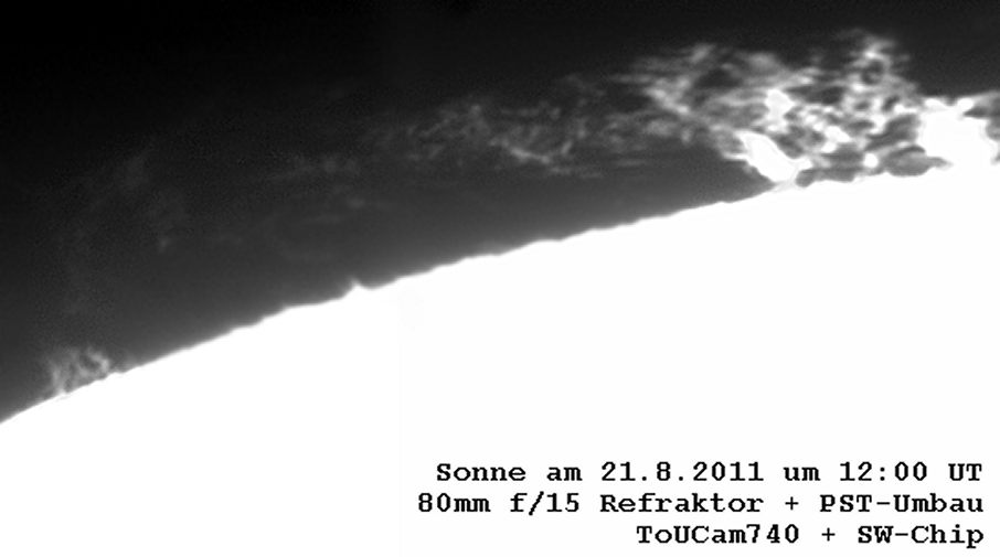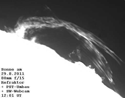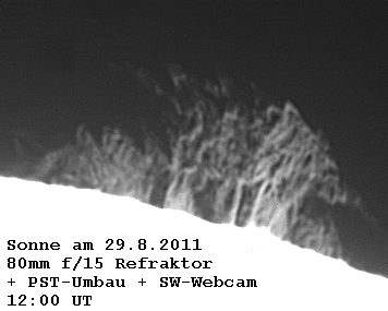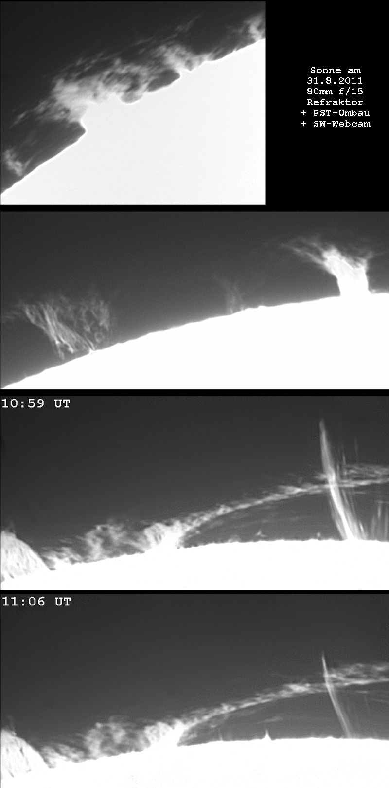 Am 29.8. war eine sehr schnelle, eruptive Protuberanz zu sehen. Sie war so schnell, das sie selbst auf kurz