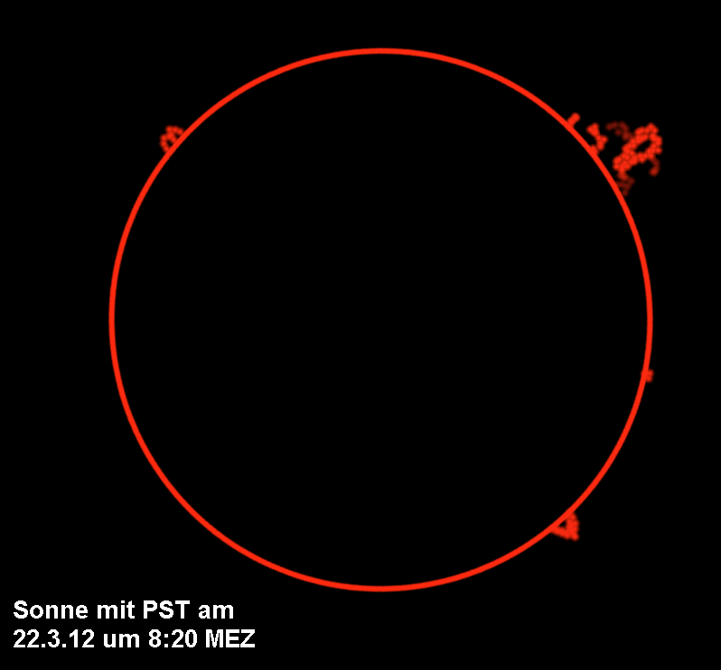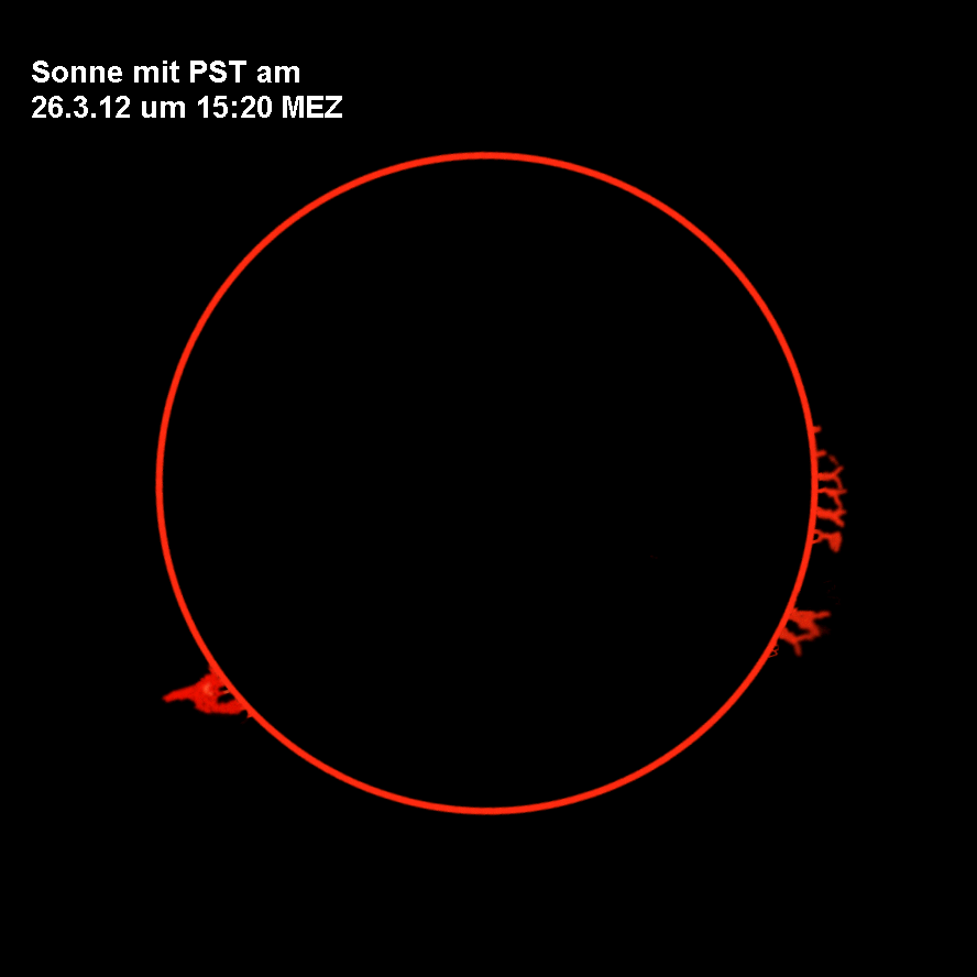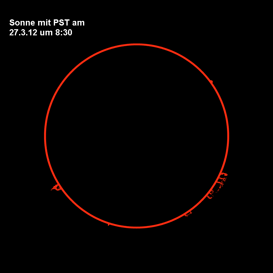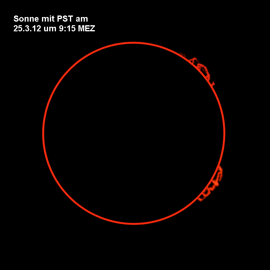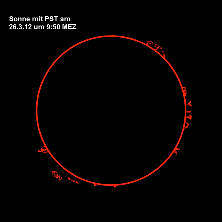 Am Morgen des 26.3. waren die meisten und schönsten Protuberanzen zu sehen.