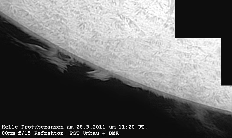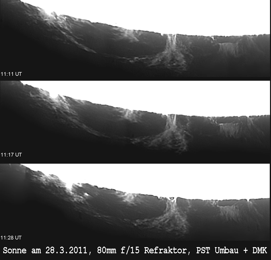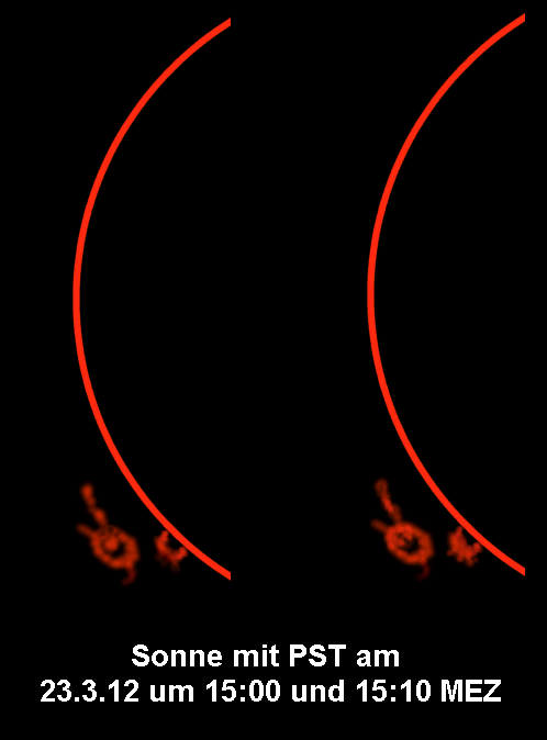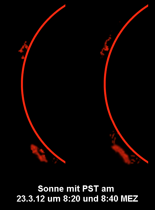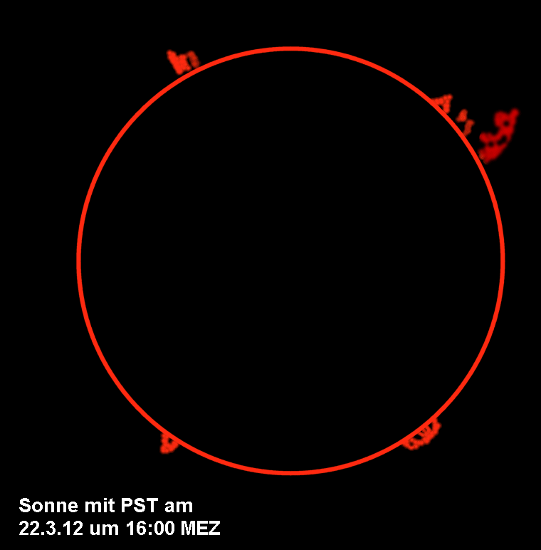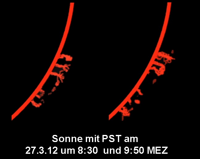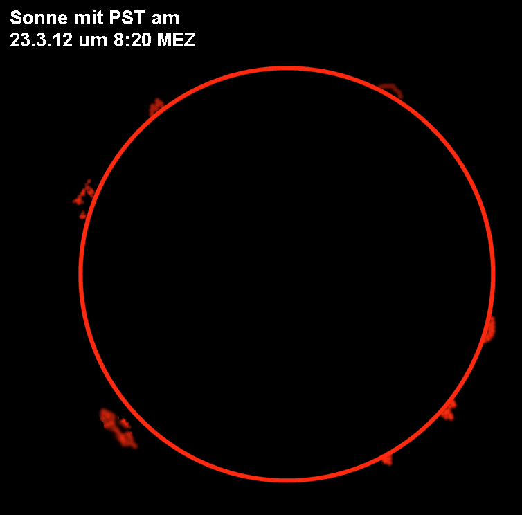 Am Morgen des 26.3. waren die meisten und schönsten Protuberanzen zu sehen.