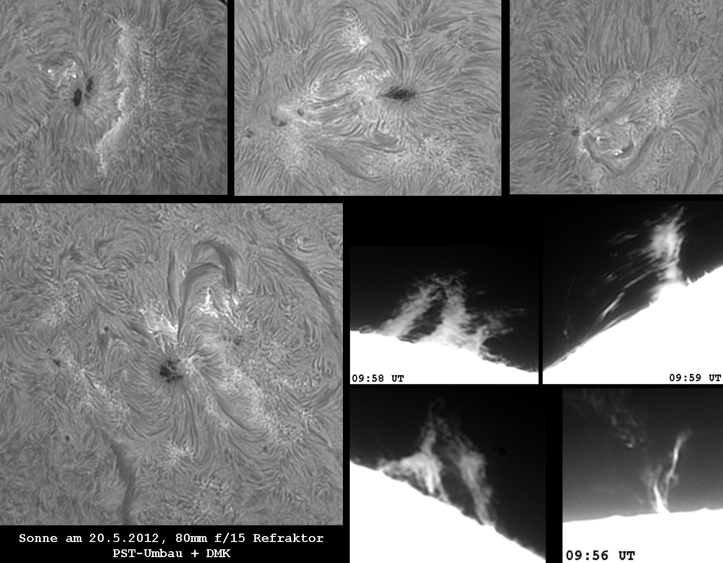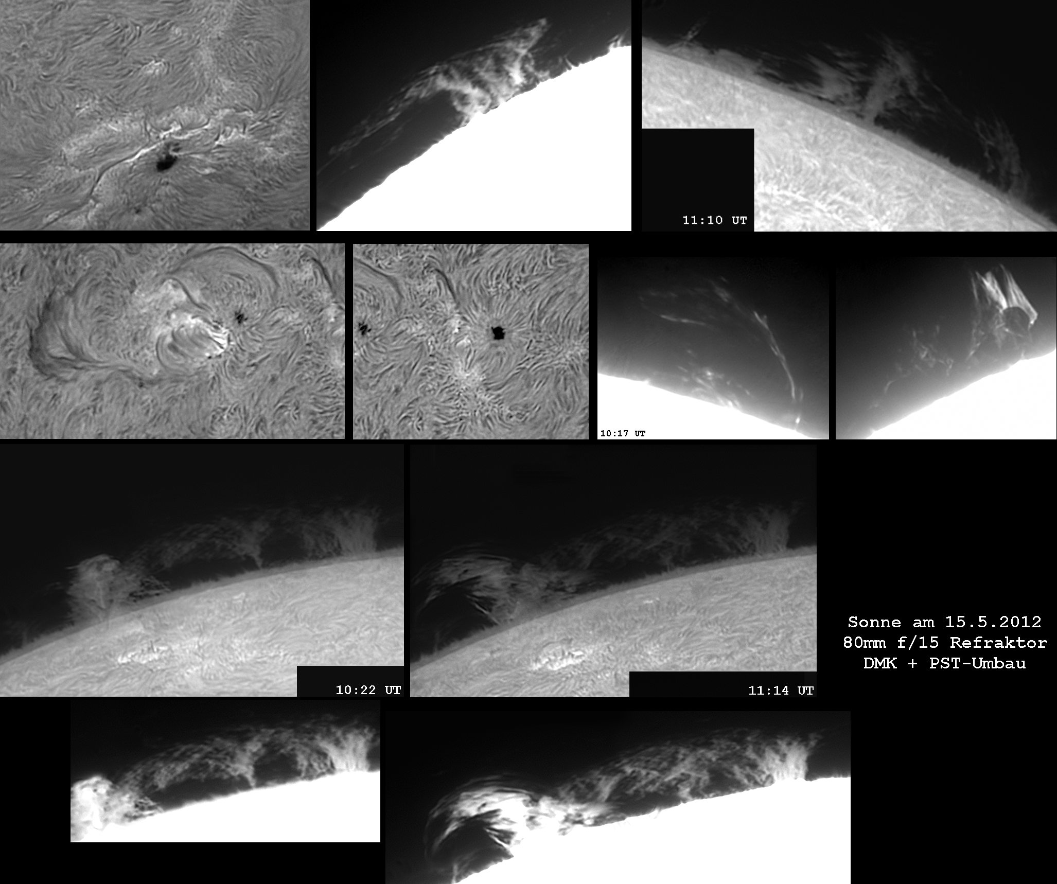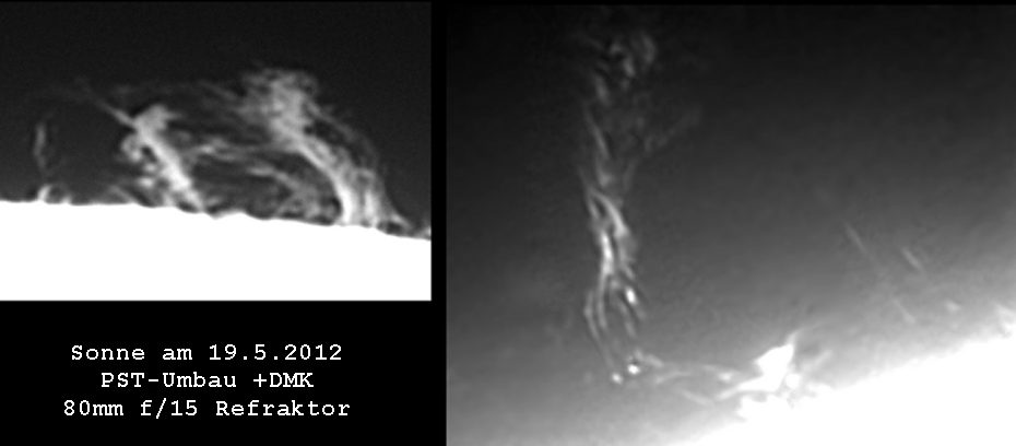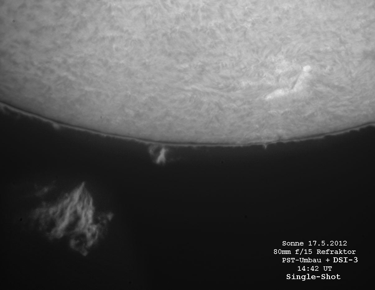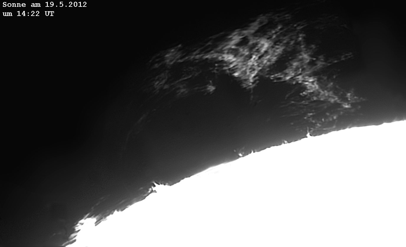 der Sonnenrand abgefahren. Es waren ungewöhnlich viele helle Protuberanzen zu sehen!