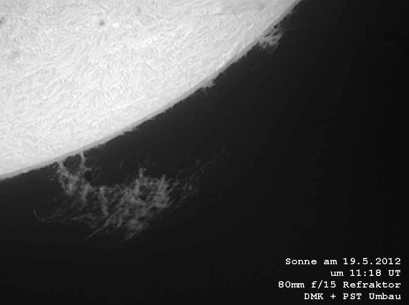 dafür war an diesem Tag eine schöne Protuberanz zu sehen.