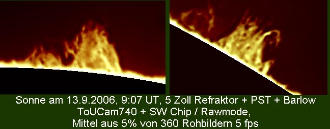Die Protuberanzen am 12.9. und 13.9. waren eher klein und schwächlich.