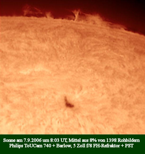 Ab 5.9. und 10.9. waren weitere mittelgroße Protuberanzen zu sehen.