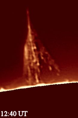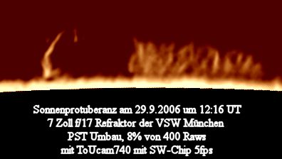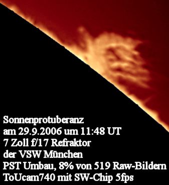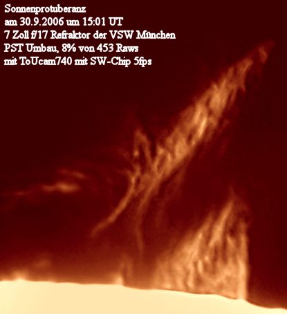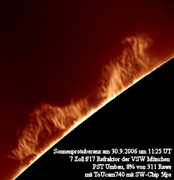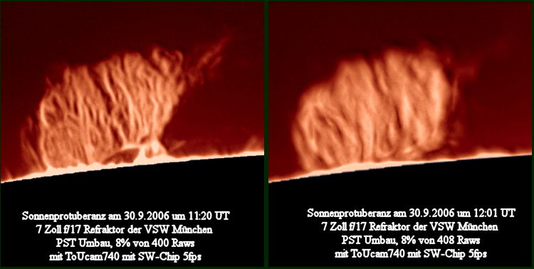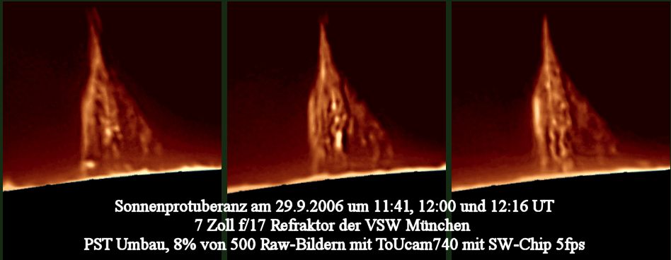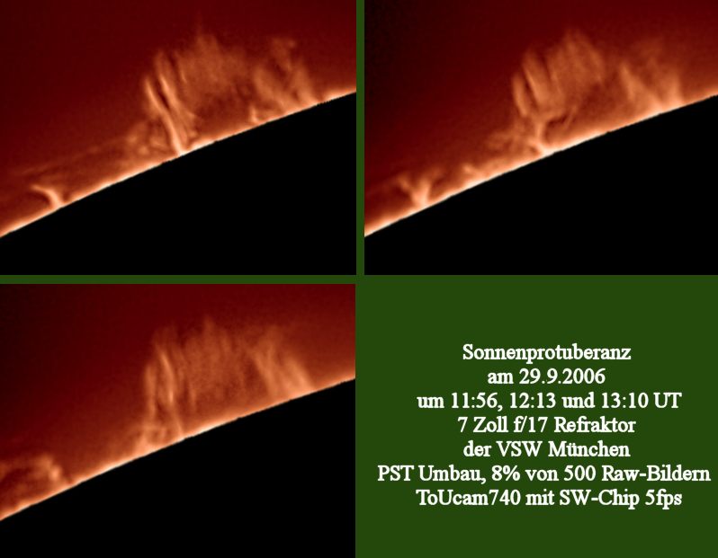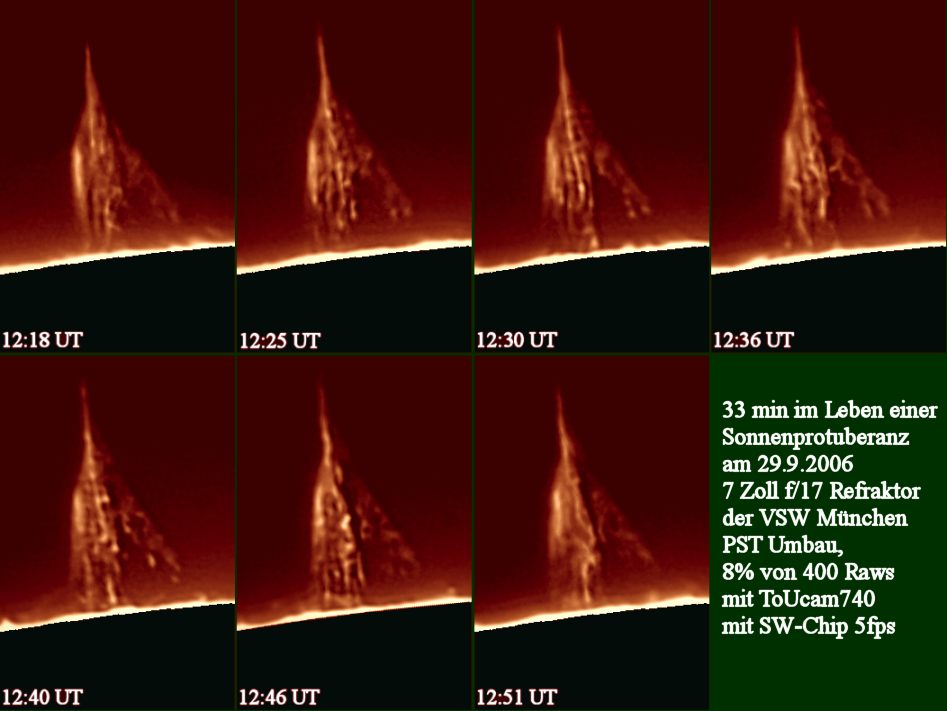 Die obige Protuberanz zeigte rasche Veränderungen. Die Aufnahmen der folgenden