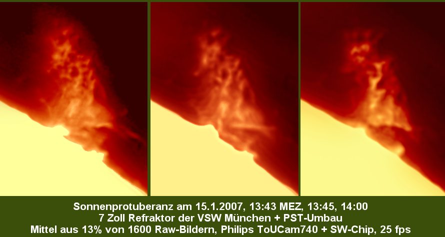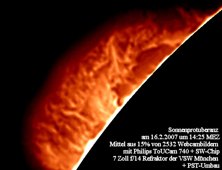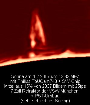 Während der Umrüstung auf die kurze PST-Umbauvariante ohne schwarzen Kasten verschlechterte sich leider das Seeing. Das der Umbau(2) prinzipiel funktioniert,