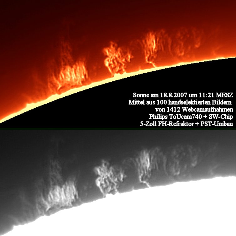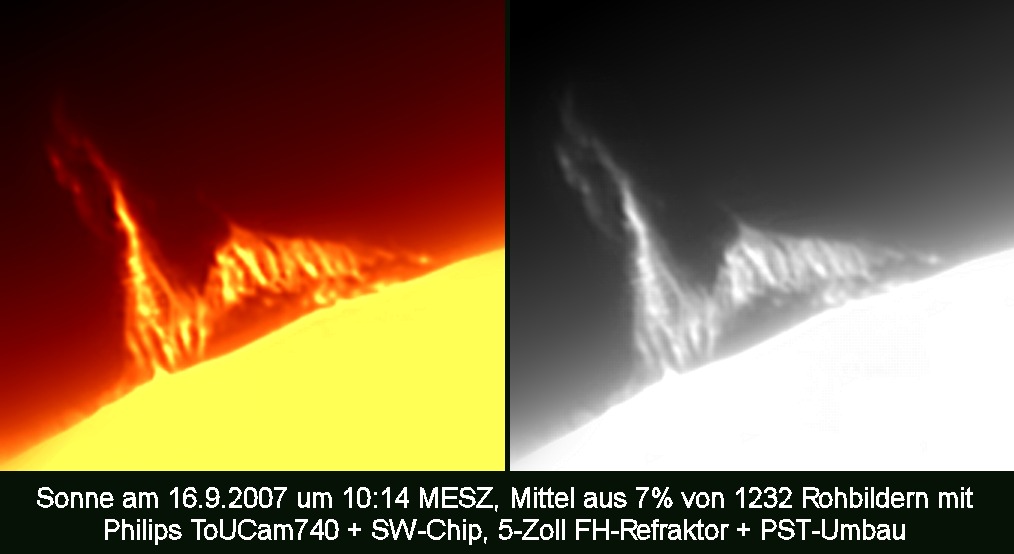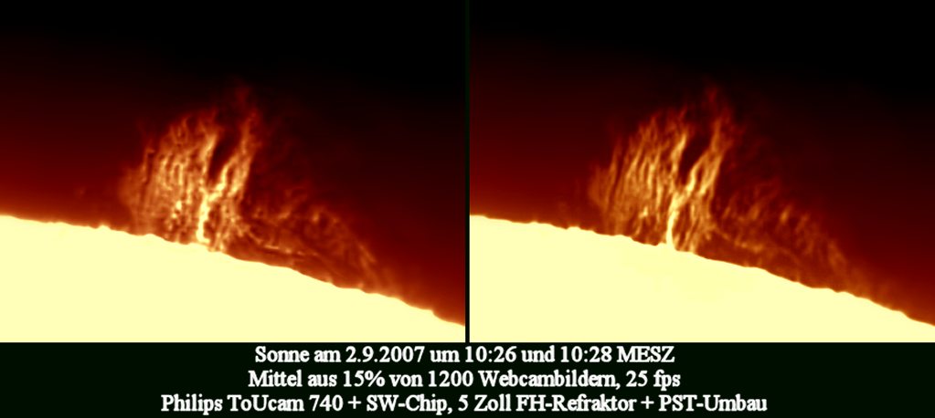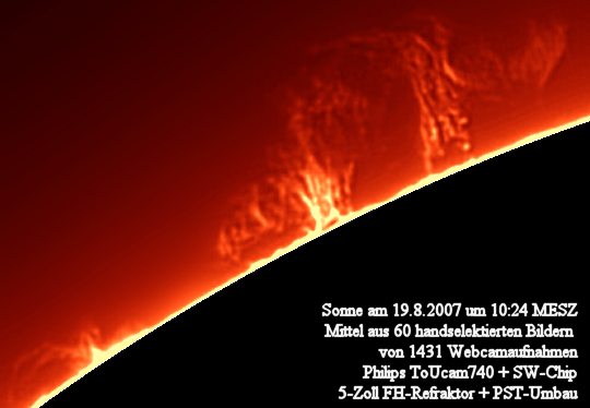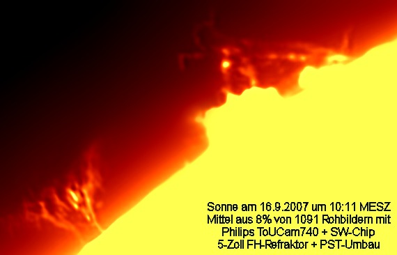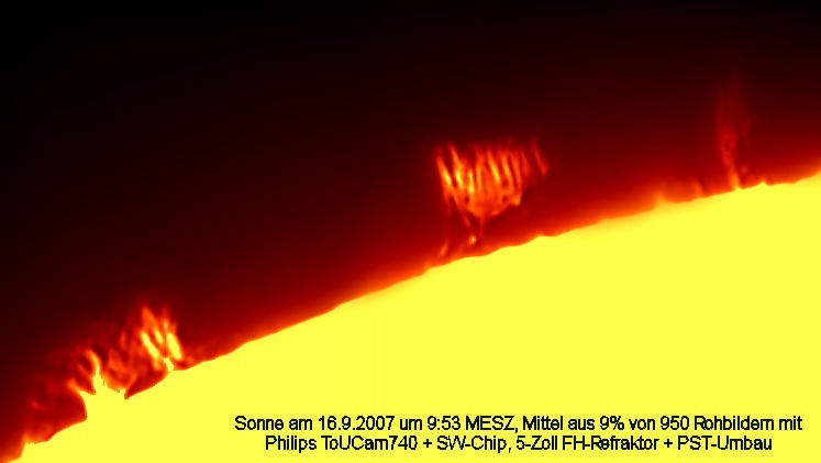 Am 16.9.2007 tummelten sich eine Reihe kleinerer Protuberanzen am Sonnenrand.