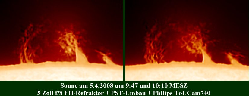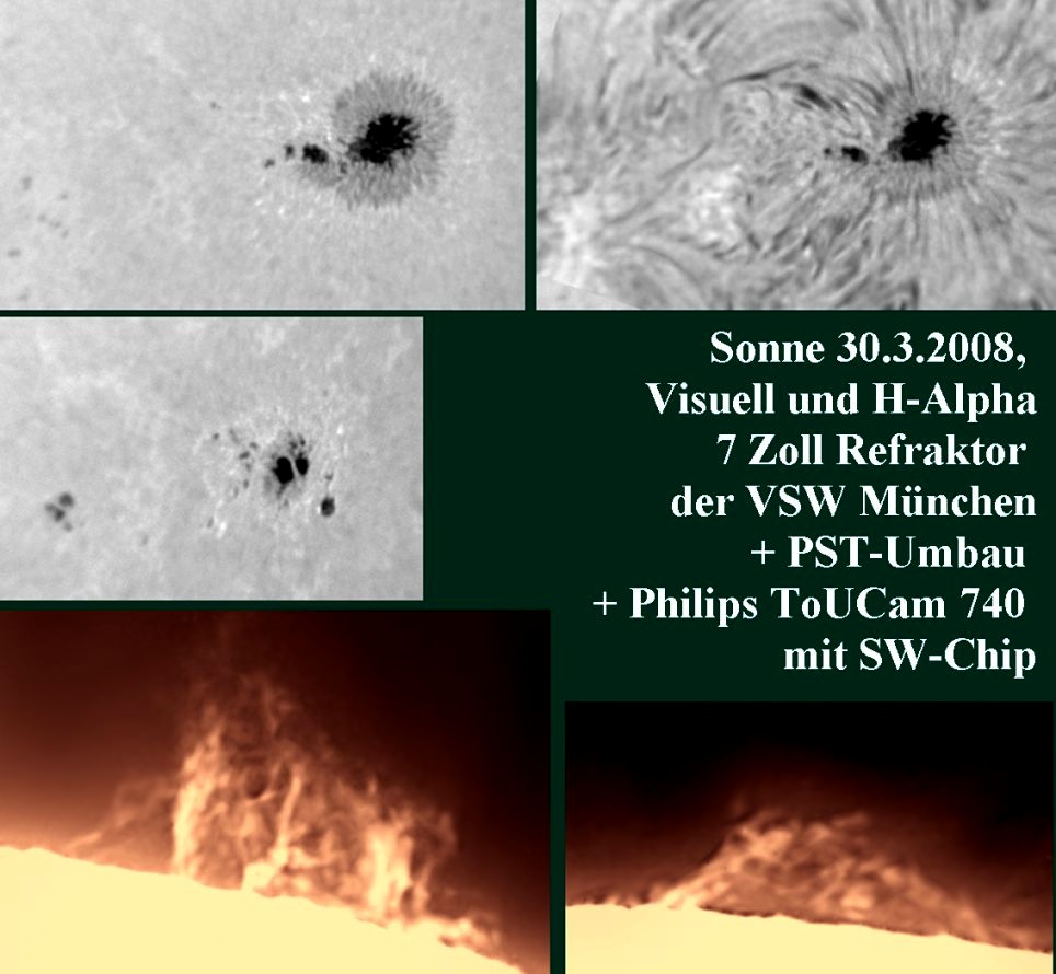 Am 30.3.08 konnten sie im Visuellen und im H-Alpha abgelichtet werden.