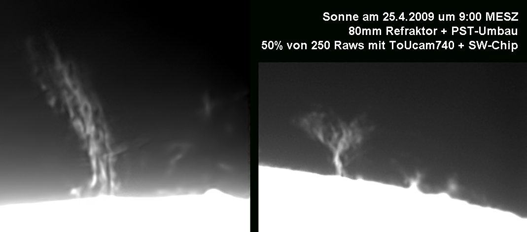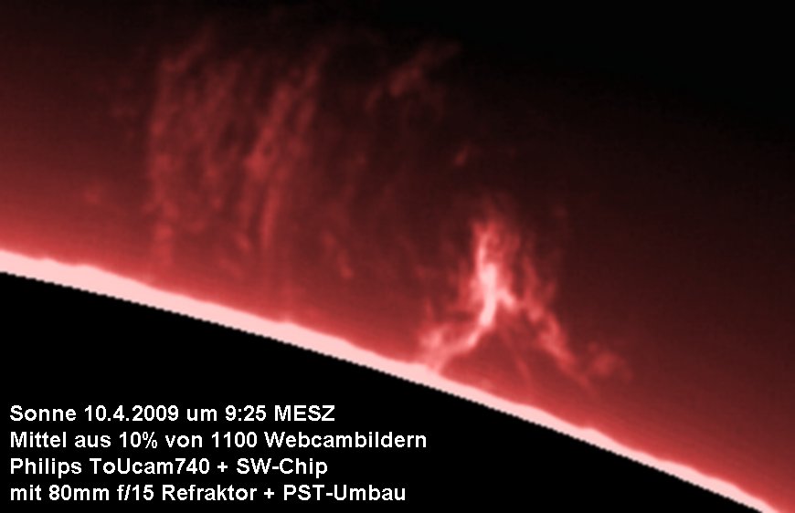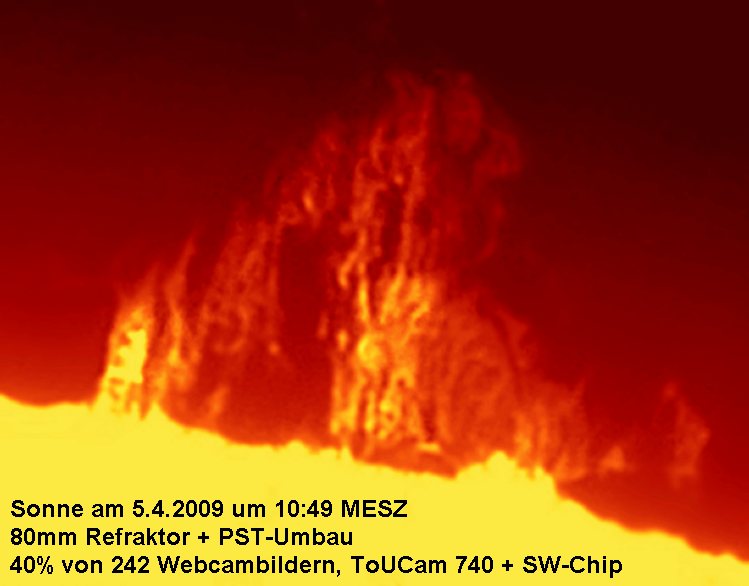 Am 5.4.2009 war der Himmel in München recht diesig. Eigentlich hat man bei Dunst kein Protuberanzenwetter,