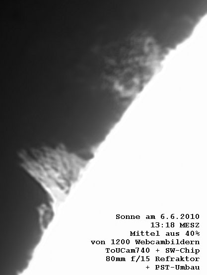 Am 5.6.10 gab es bei guten Seeing 2 kleine Protis mit schöne Strukturen.