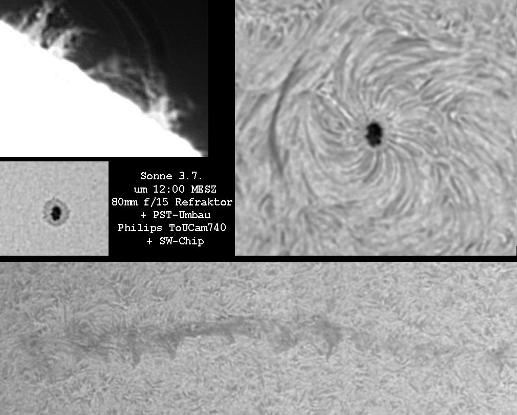 Anfang Juli zeigte sich ein schöner Einzelfleck. Ein Filament erstreckte sich über den